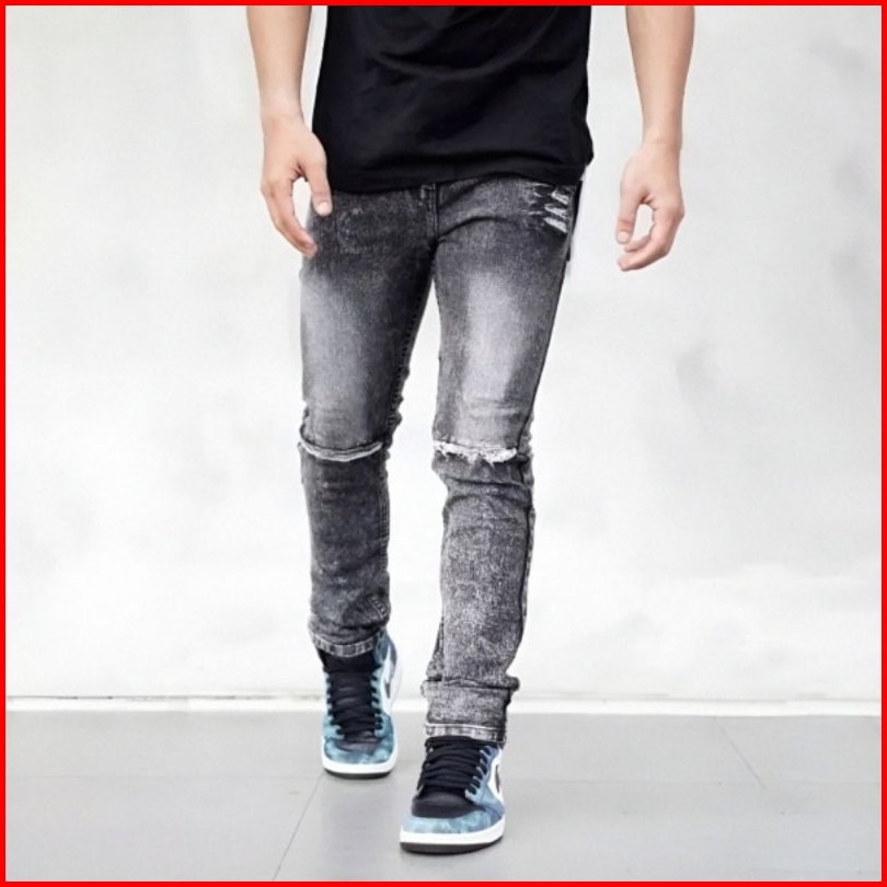 Snow Racing Bikers Sobek Ripped Jeans Premium Celana Panjang Pria Denim