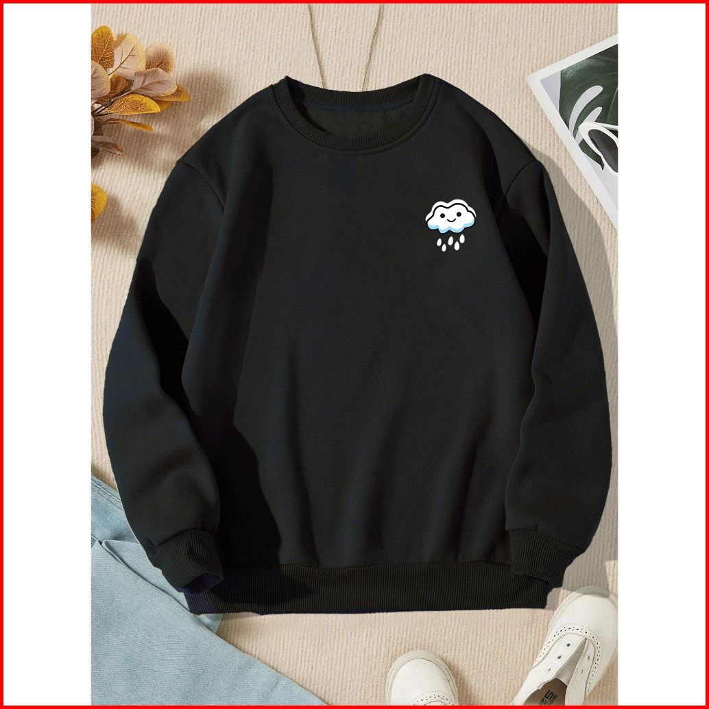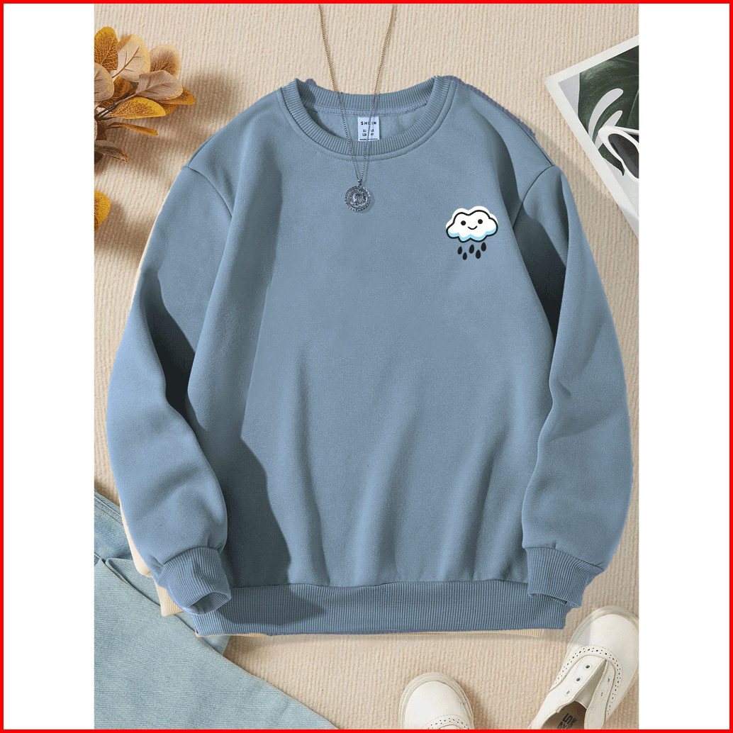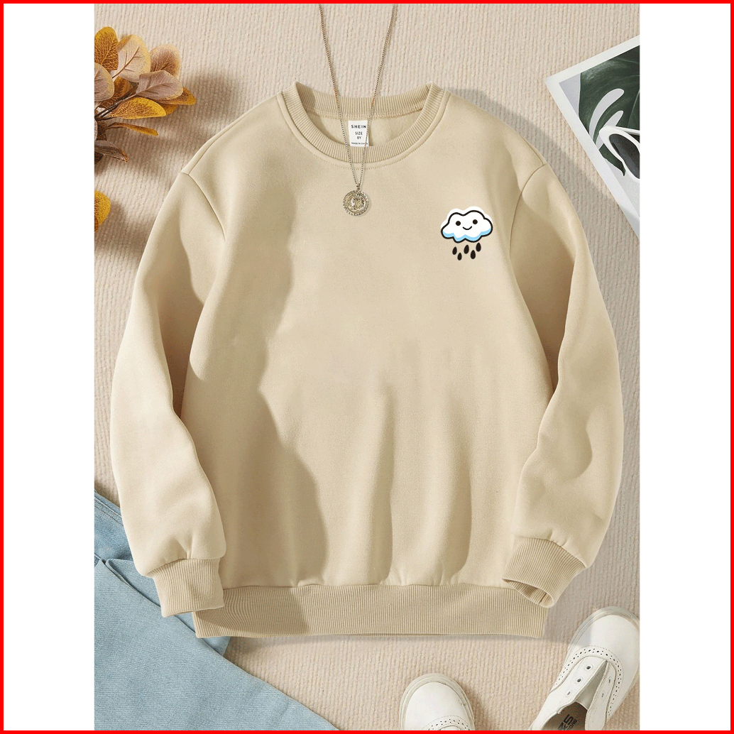 Sweater Wanita Rain Crewneck Remaja Dewasa Sweater Basic Oblong Cewe Flecce Murah Korean Style