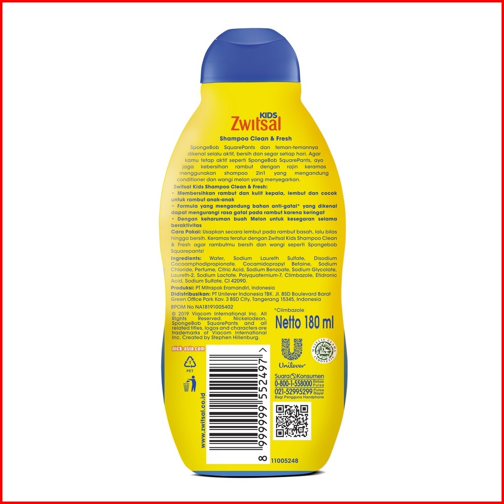 Zwitsal Kids Shampo Anak Clean Fresh 180 Ml