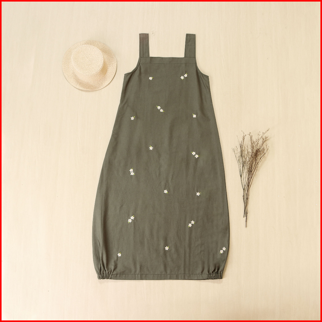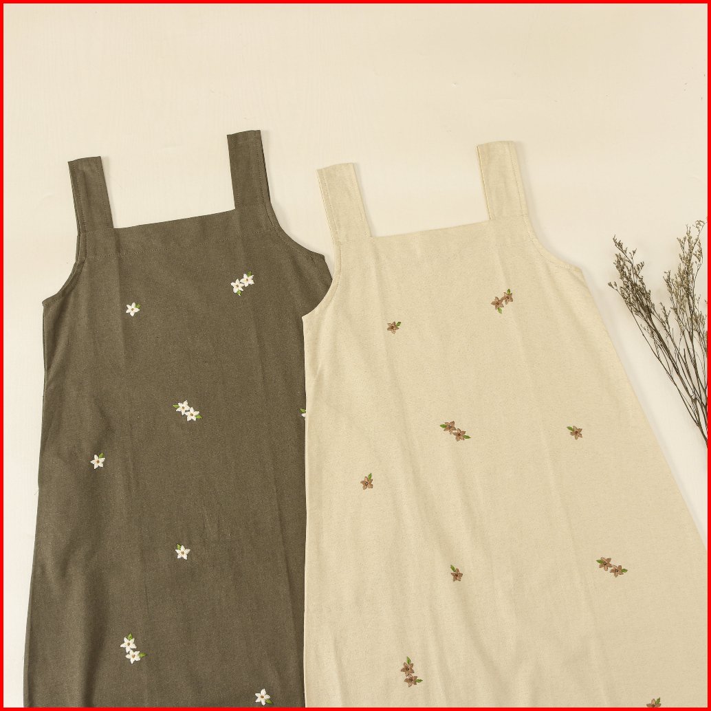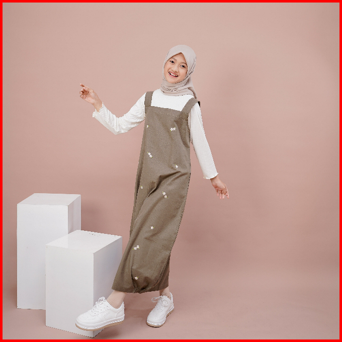 Hande Ghania Overall Set Kaos Knit Gamis Muslim Anak Remaja Tanggung Bahan Linen Bordir Manual