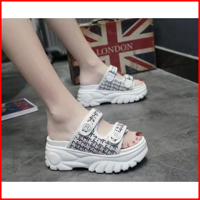 Devoue 064free Boxsandal Wedges Hak Tebal Slip On High Heels Sandal Wedges Wanita Premium Quality Korea Sytle Tinggi 5cm
