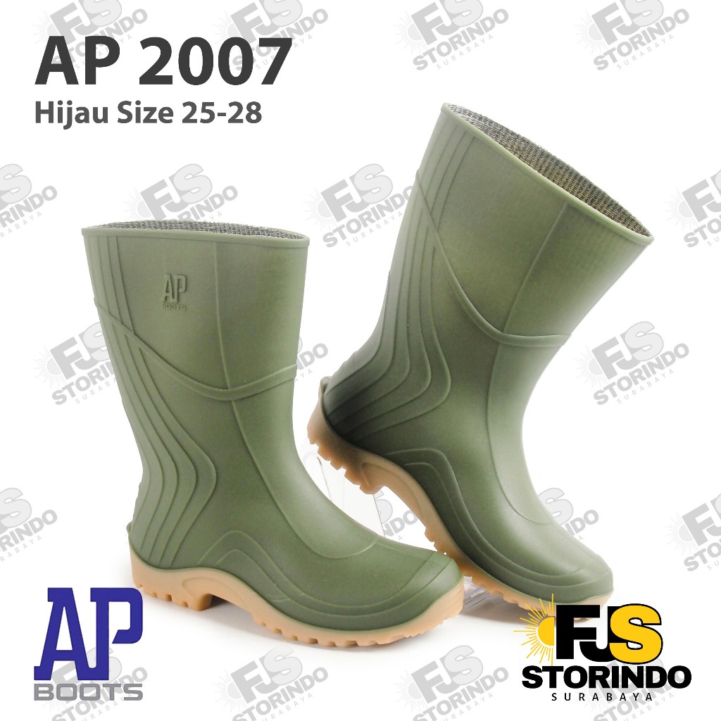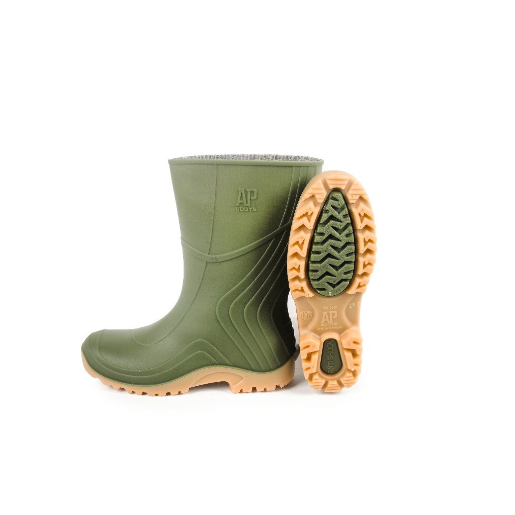 Sepatu Boot Pendek Ap 2007 Hijau Apboots Karet Lokal Anti Air & Slip Perkebunan Pertanian Surabaya Jawa Timur Jatim
