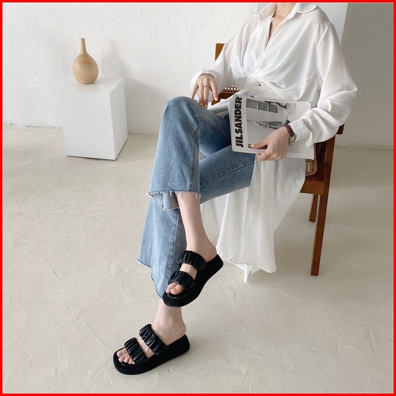 Rd 045 Sandal Platform Ban 2 Kerut Wanita Terbaru