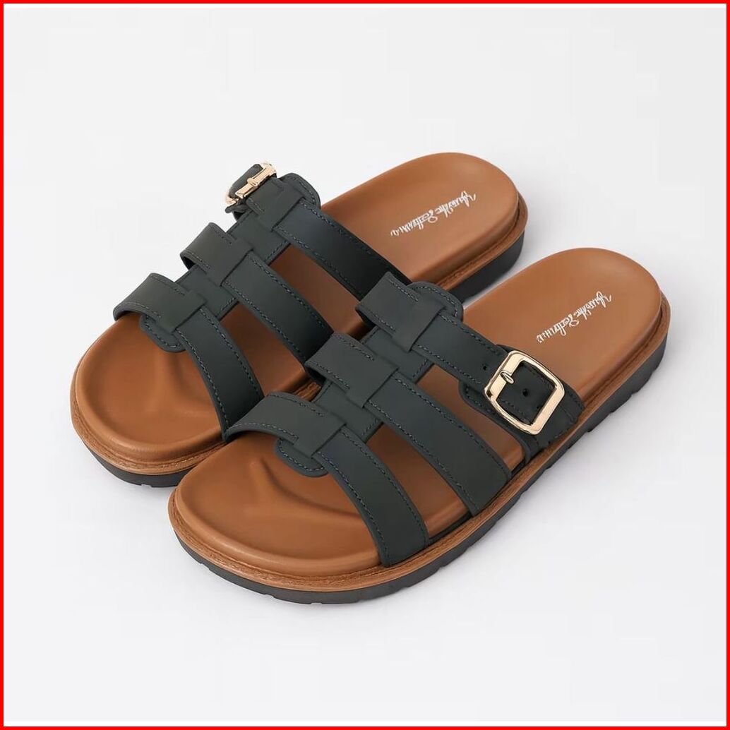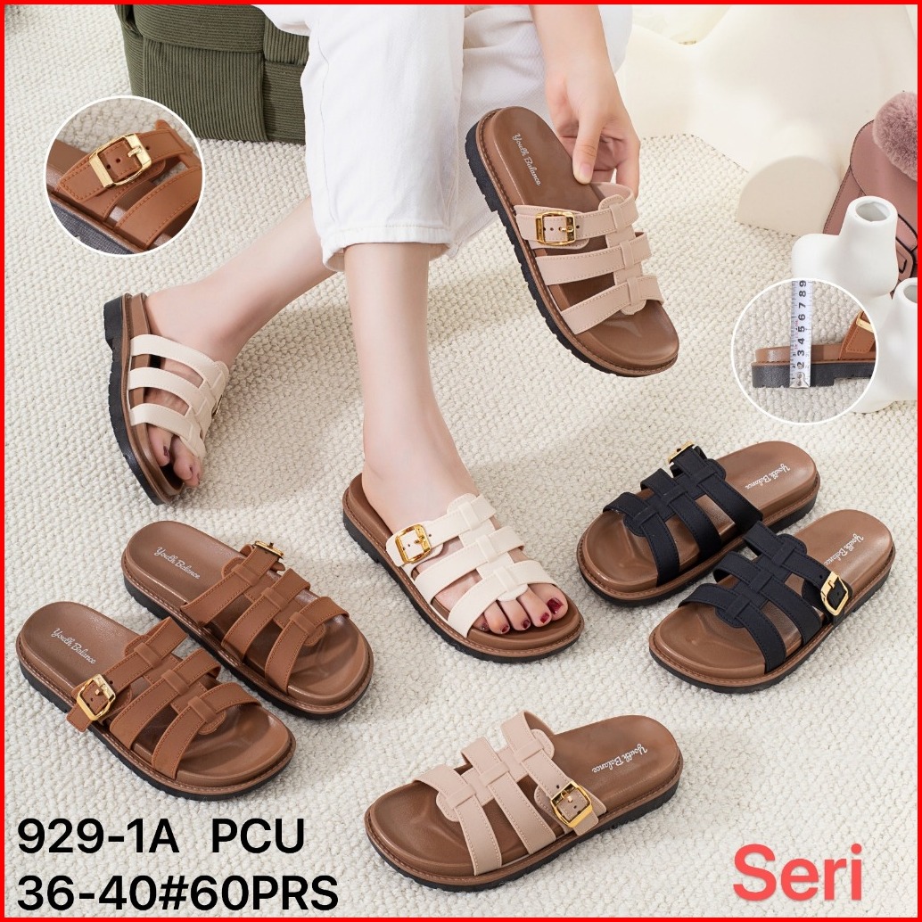 929-1a Sandal Wanita Flat Tali Gesper Kekinian Sandal Slip On Casual Nyaman Dipakai Anti Licin