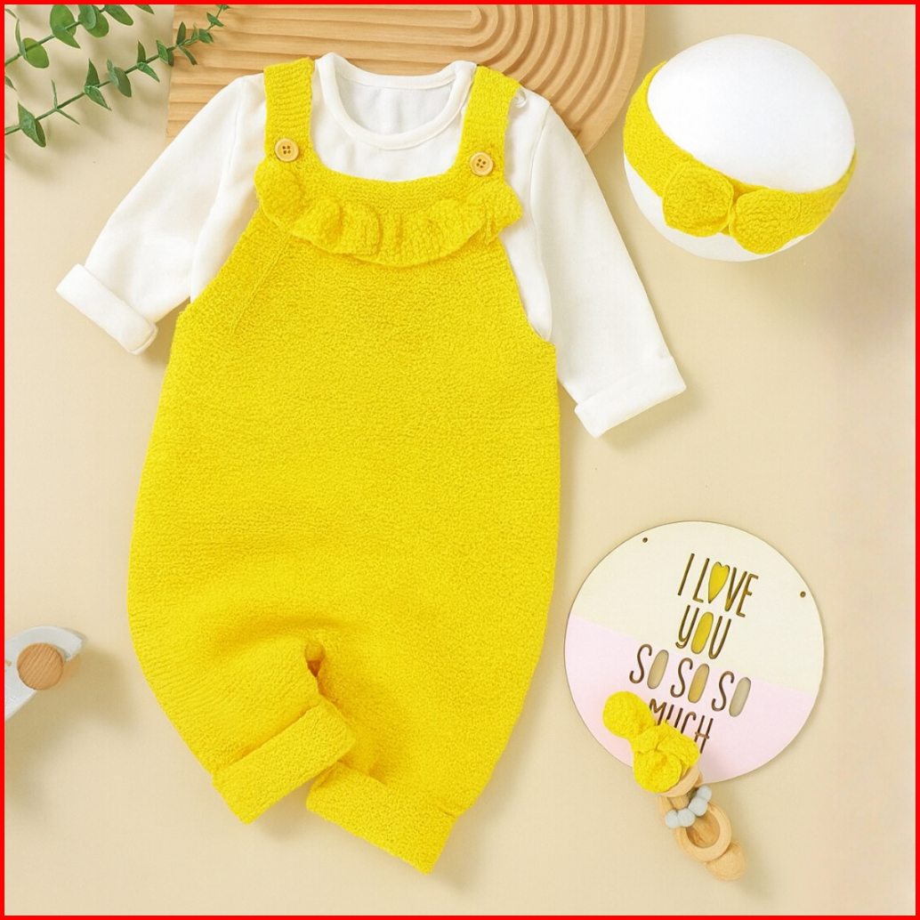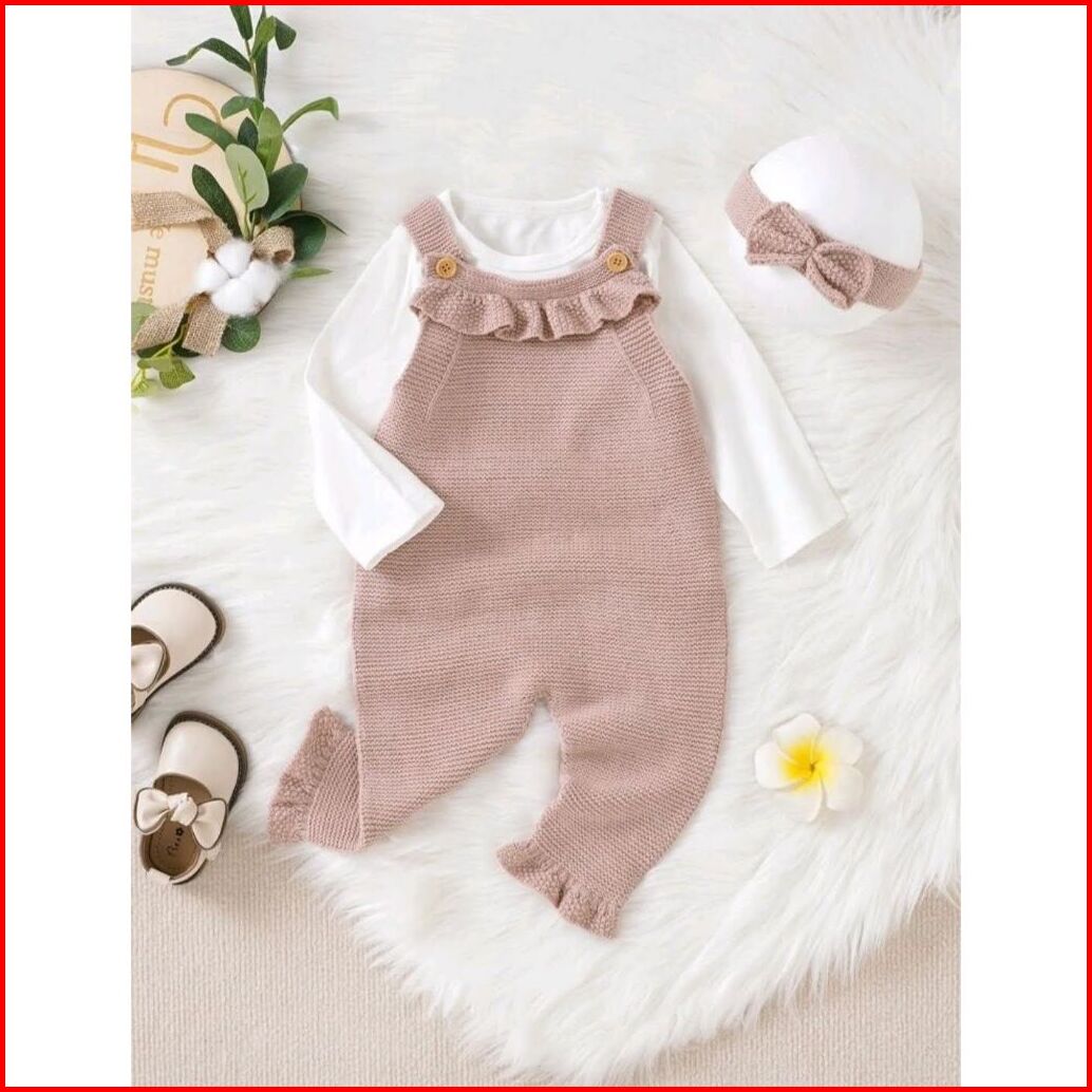 Toddler Overall Newborn Baby Girl Autumn Winter Outfit Sets Solid Color Sleeveless Knitted Sling Jumpsuit Headband