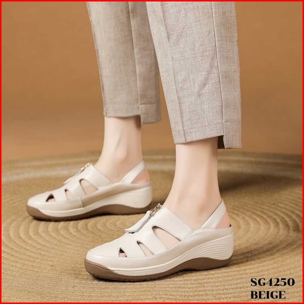 Prf Sandal Retro Tinggi 5cm Bahan Sintetis Sepatu Trendy Fashion Wanita Beige Khaki 36-40 Korea Sg4250