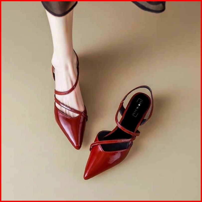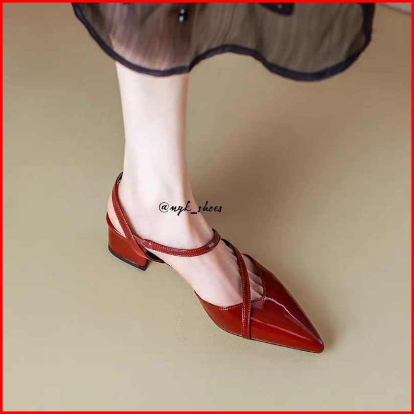 Sandal Wanita Heels 3cm Kekinian Ujung Lancip Warna Glosy Mewah Nyk07