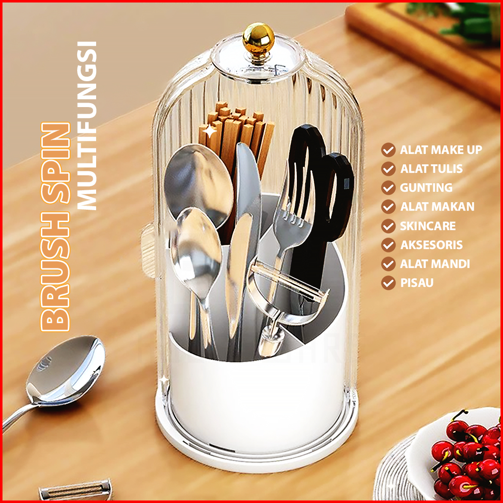 Hugo Tempat Penyimpanan Sendok Garpu Makeup Brush Pensil Serbaguna Organizer Putar Akrilik