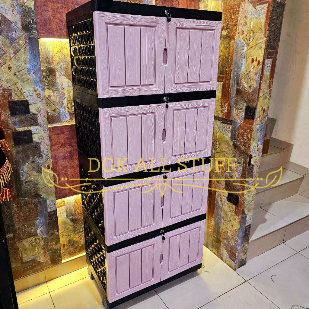 Lemari Baju Pakaian JUMBO BESAR Susun 4 EMPAT Tingkat Anak Bayi Serbaguna Serba guna Plastik Full Kunci Berkunci Motif K