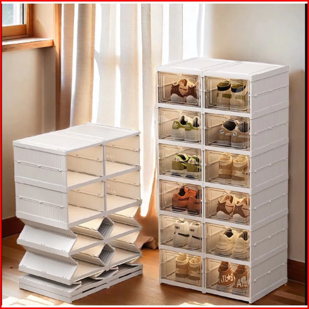 Rak Sepatu Lipat Anti Debu Pico Celo Rak Susun Kotak Sepatu Portable Lemari Plastikk Shoe Box
