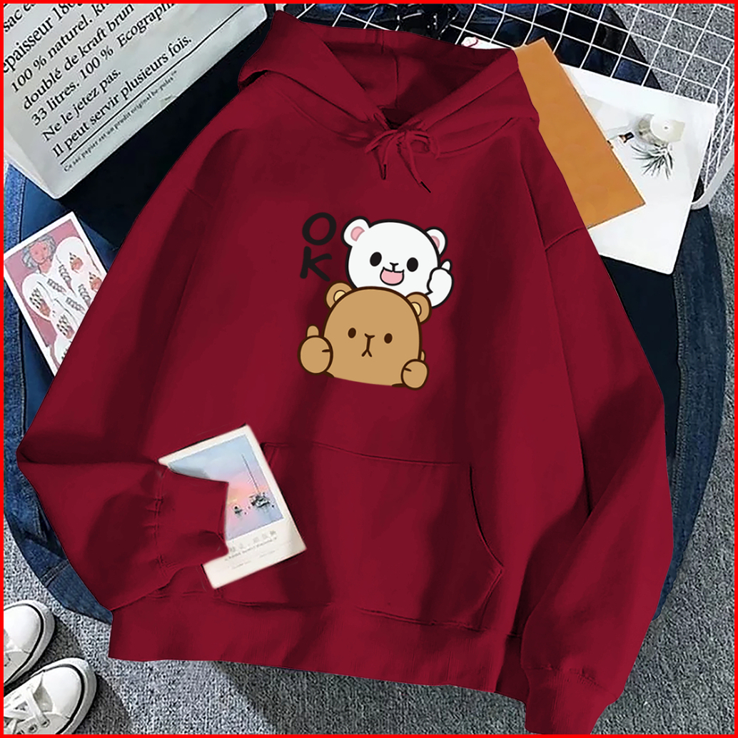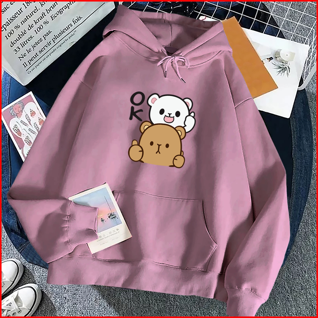 Sweater Hoodie Anak Perempuan Ok Lengan Panjang Umur 5-15 Tahun Bahan Flecee