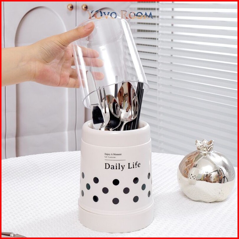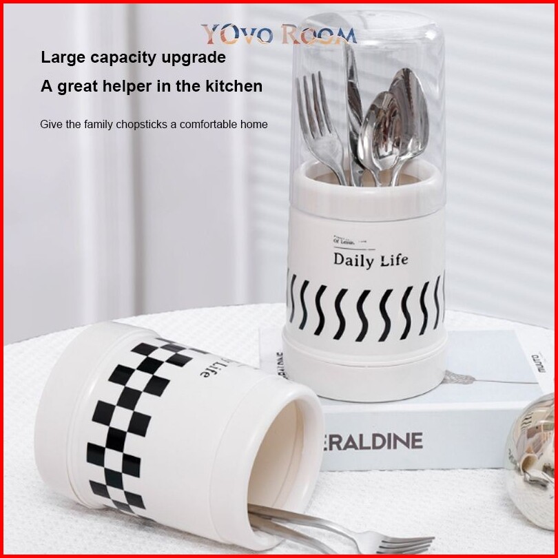Tempat Sendok Tempat Penyimpanan Peralatan Makan Sendok Garpu Sumpit Dengan Tutup Cutlery Case Tabung Bulat Yovo