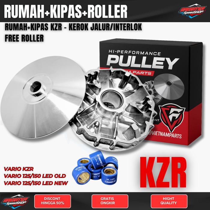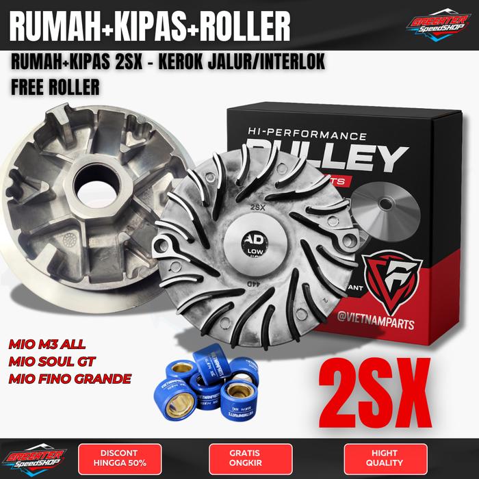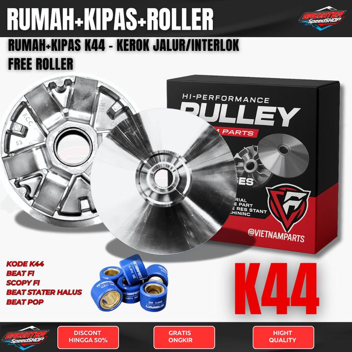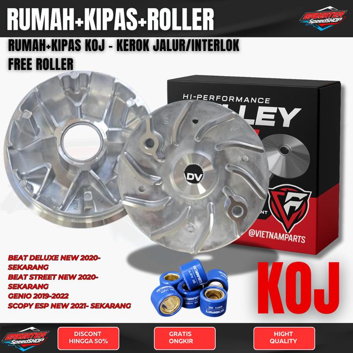 VIETNAMPARTS PULLEY VARIO 125/150/160 MIO/MIO M3 BEAT DELUXE & STREET KODE KOJ RUMAH + KIPAS BUBUT 13.8 DERAJAT UNTUK BE