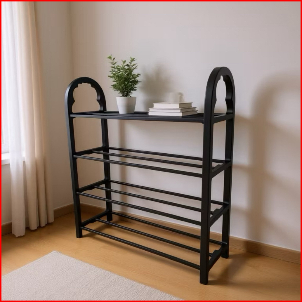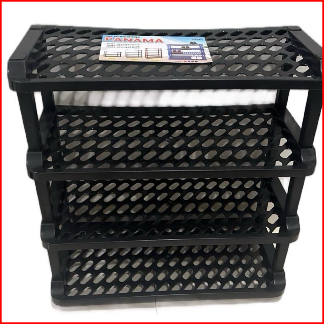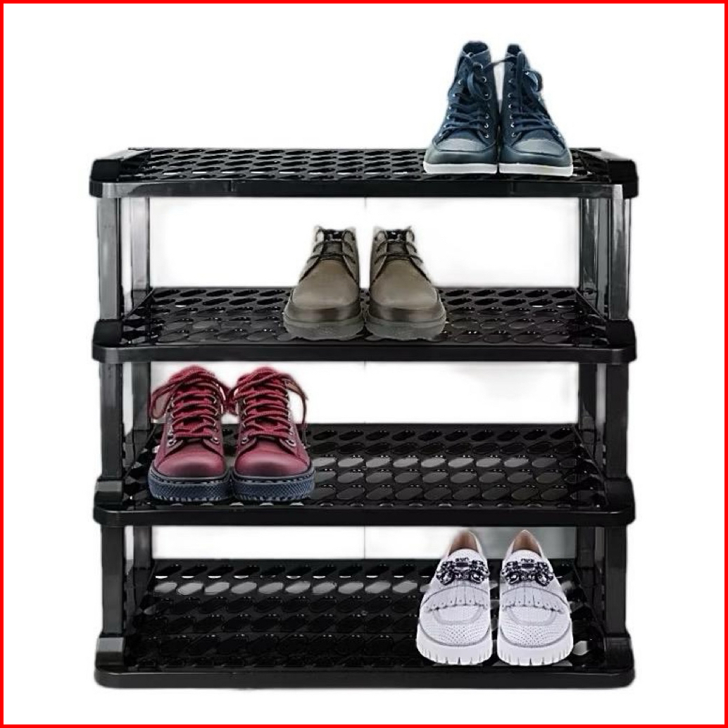 Rak Sepatu 4 Susun Plastik Tempat Penyimpanan Sandal Awet Hitam