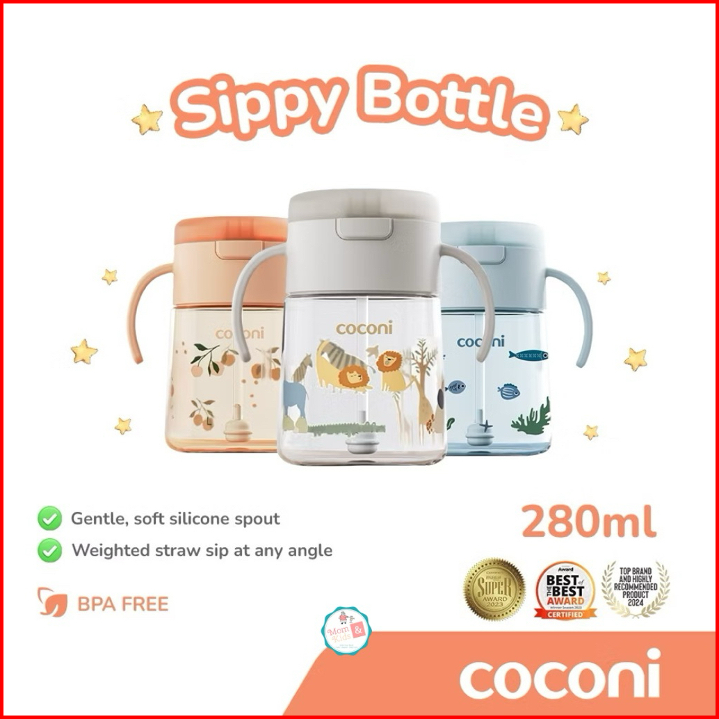 Coconi Sippy Bottle 280ml Botol Minum Bayi Dengan Sedotan Berat Tutup Anti Tumpah Bpa Free