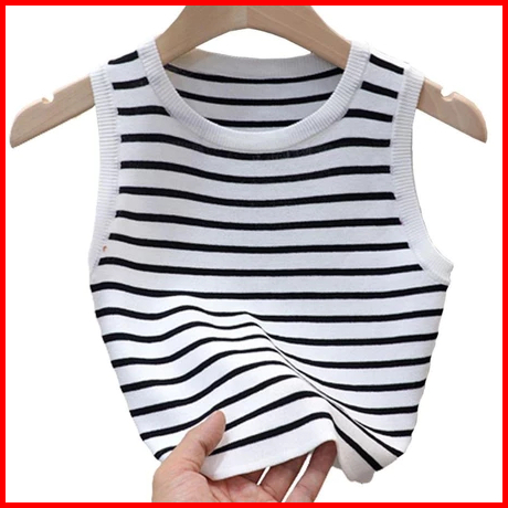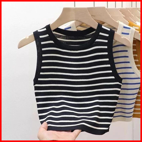 Rompi Rajut Tank-top Wanita Garis Garis Crop Top - Tank-top Wanita Korean Style