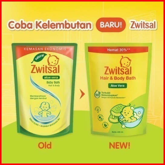 Zwitsal Baby Bath 2in1 Hair Dan Body Pouch 400ml Sabun Dan Shampo Bayi Zwitsal