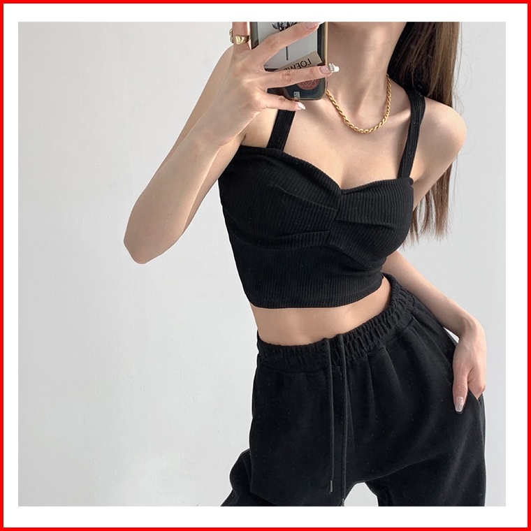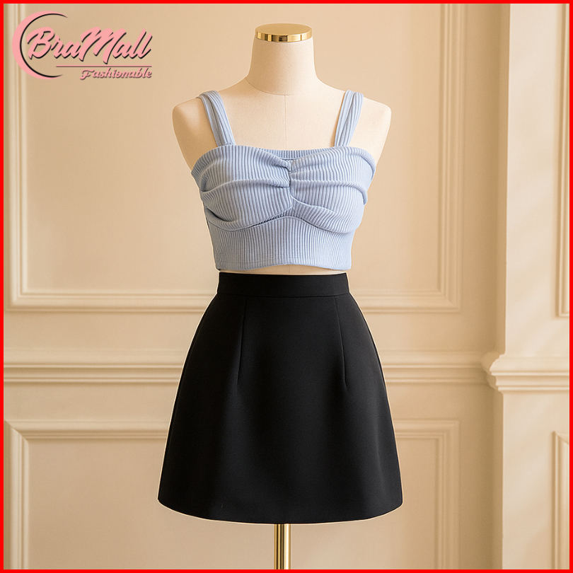 Bra Mall Bm-301 Crop Top Rajut Wanita Tanktop Kekinian Atasan Knit Stretch Slim Fit Warna Biru