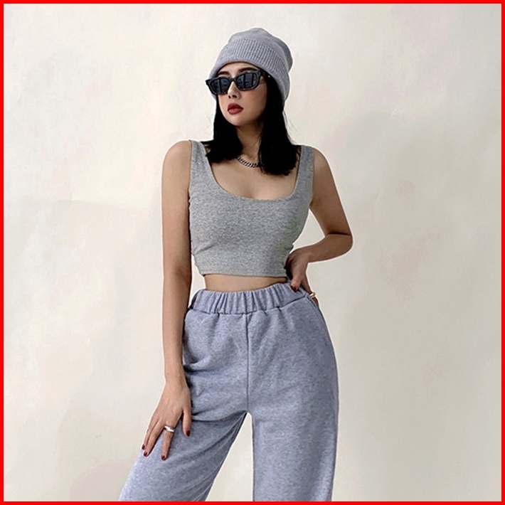 Premium Womens Basic Square Neck Cropped Tank Top 7289 S M L