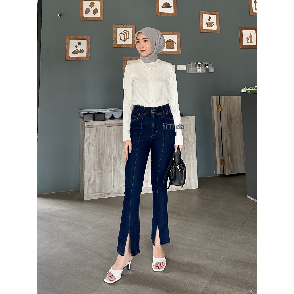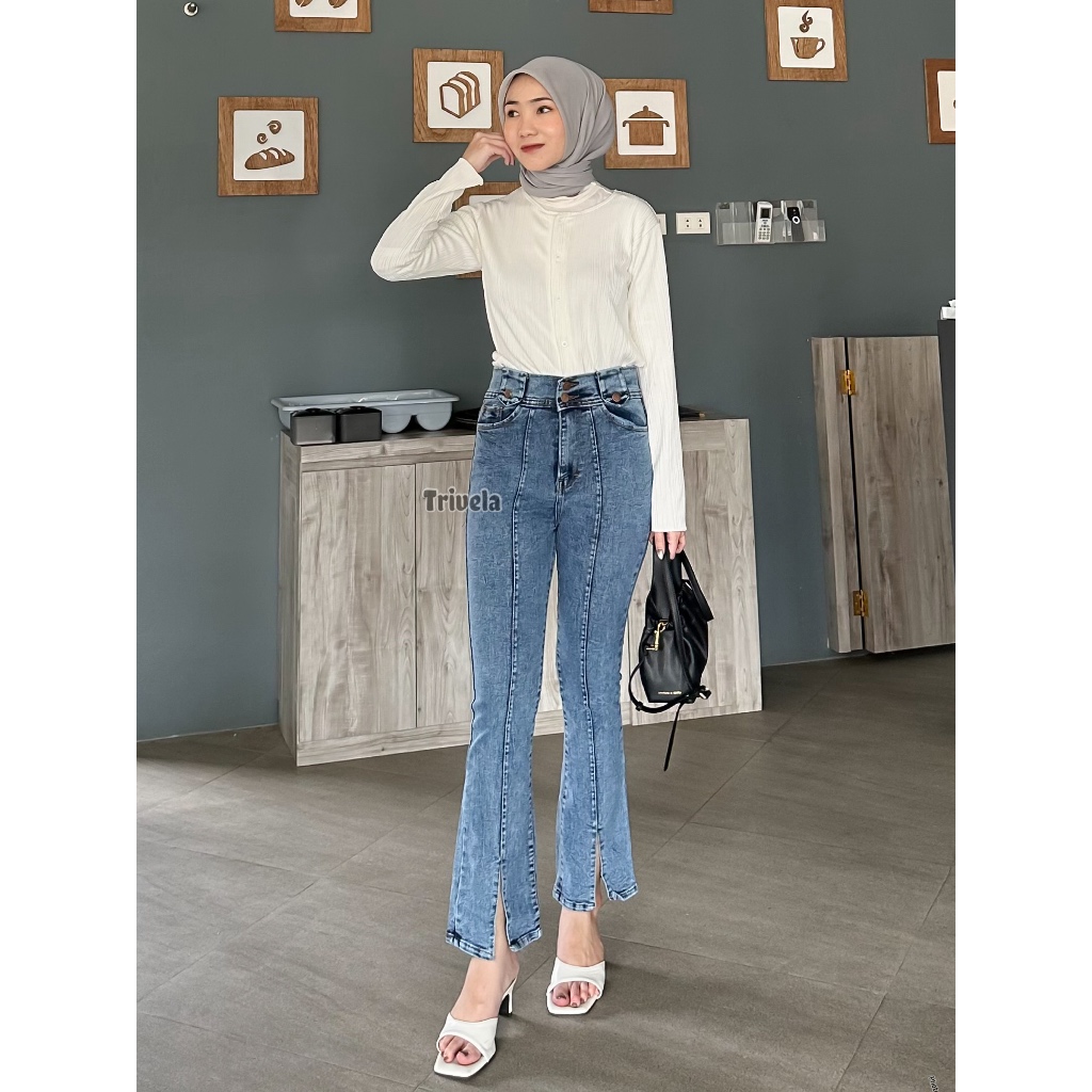 Loose Jeans Cutbray Front Line 27-38 L Celana Jeans Cutbray Loose Wanita Belah Anti Ngatung L Elsa Cutbray Jeans L Celan