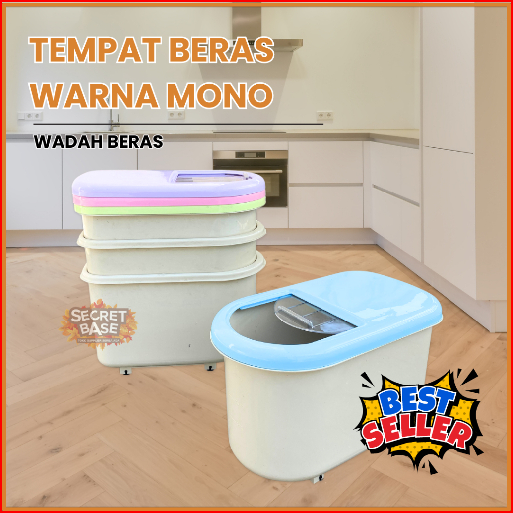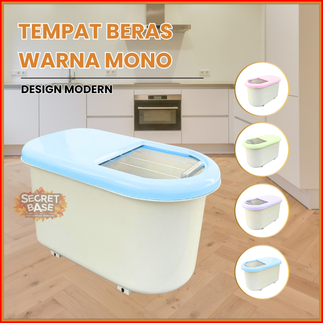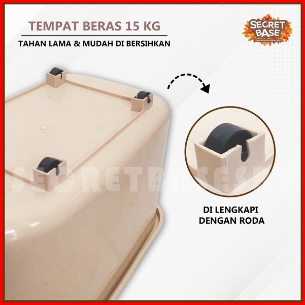 Tempat Beras 15 Kg - Dapat Roda Box Plastik Penyimpanan Makanan Serbaguna