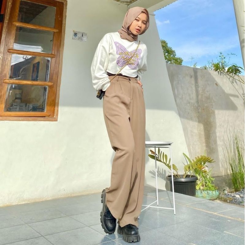 Loose Pants Trousers Celana Highwaist Anti Kusut Celana Kulot Wanita Celana Kantor Formal Wanita