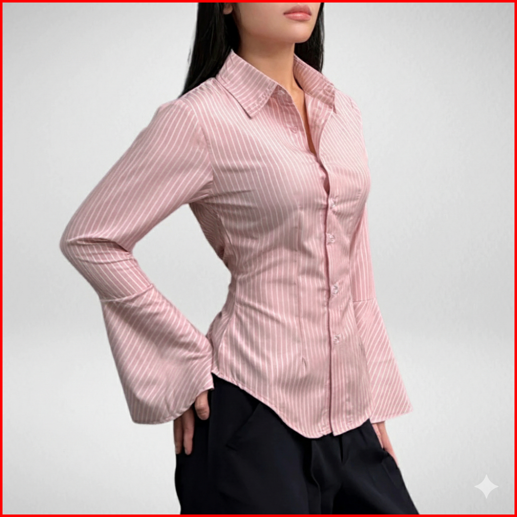 Kemeja Whispie Money Magnet Slim Fit Shirt- Kemeja Wanita Motif Salur Money Fitted Shirt