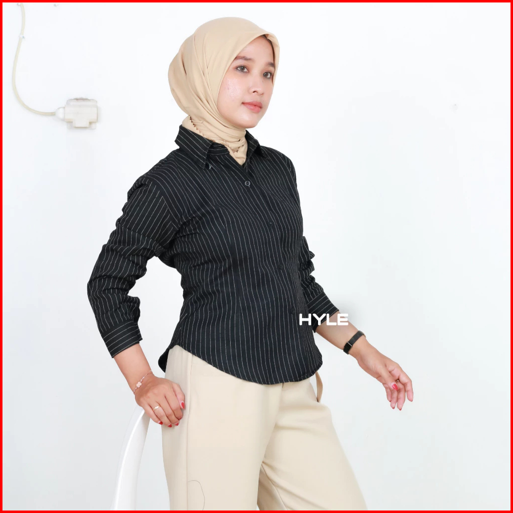 Kemeja Wanita Fitted Body Lengan Panjang Tali Belakang