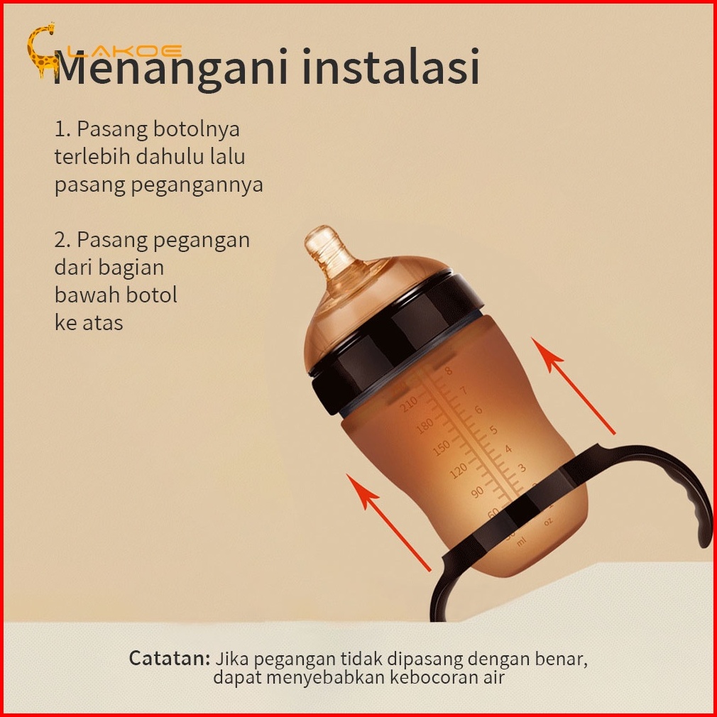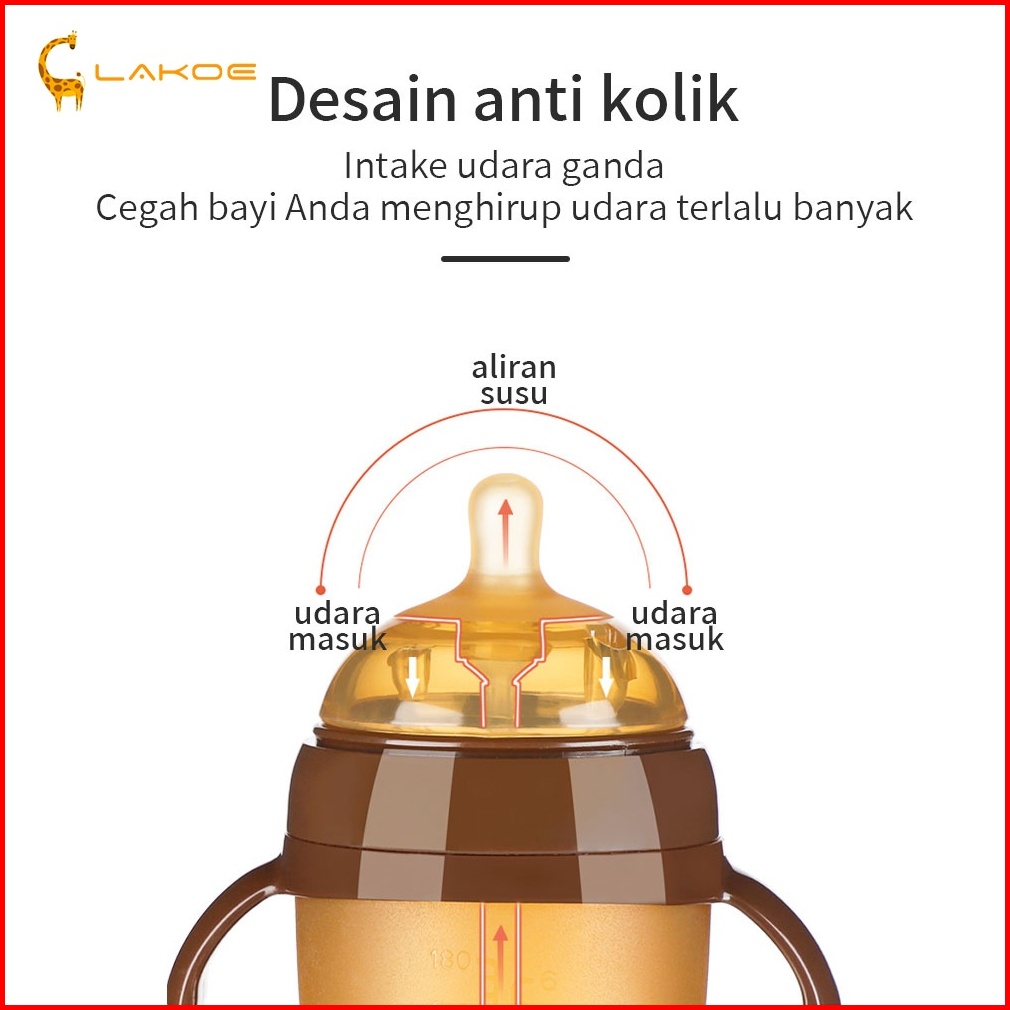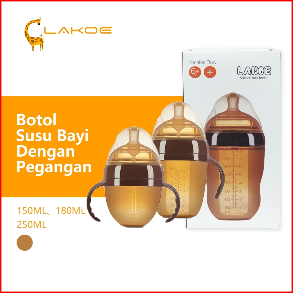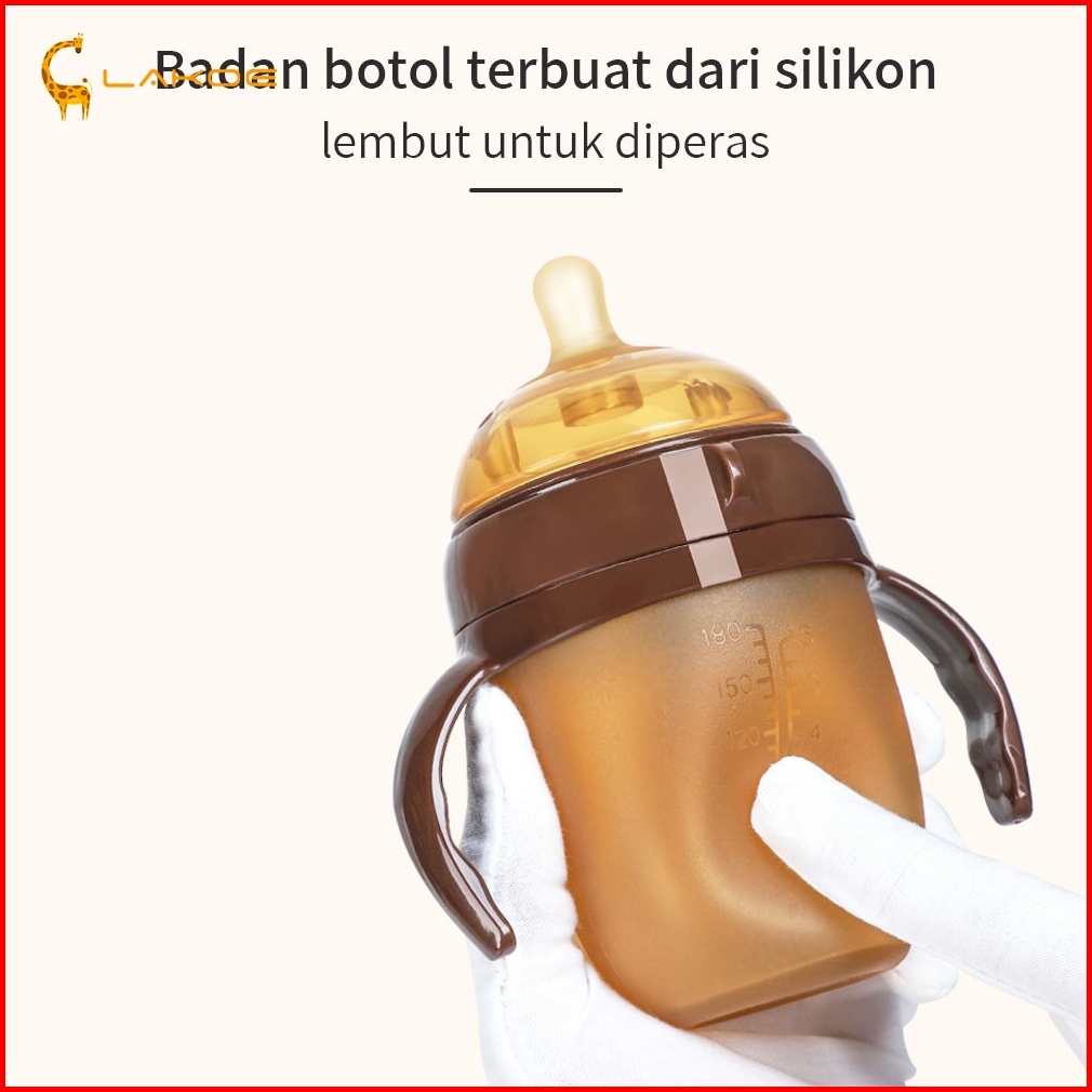 Lakoeofficialmall Botol Susu Bayi Newborn Dengan Pegangan Dot Bayi Botol Bahan Silikon Nano 150 180 250ml
