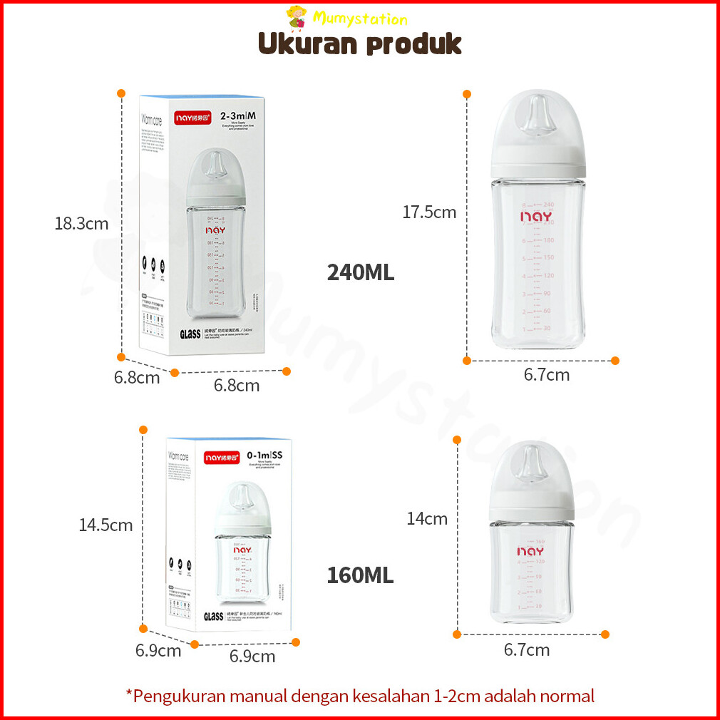 Mumystation Botol Susu Kaca Untuk Bayi Baru Lahir Seri 160ml 240ml Botol Minum Bayi Dengan Puting Antikolik