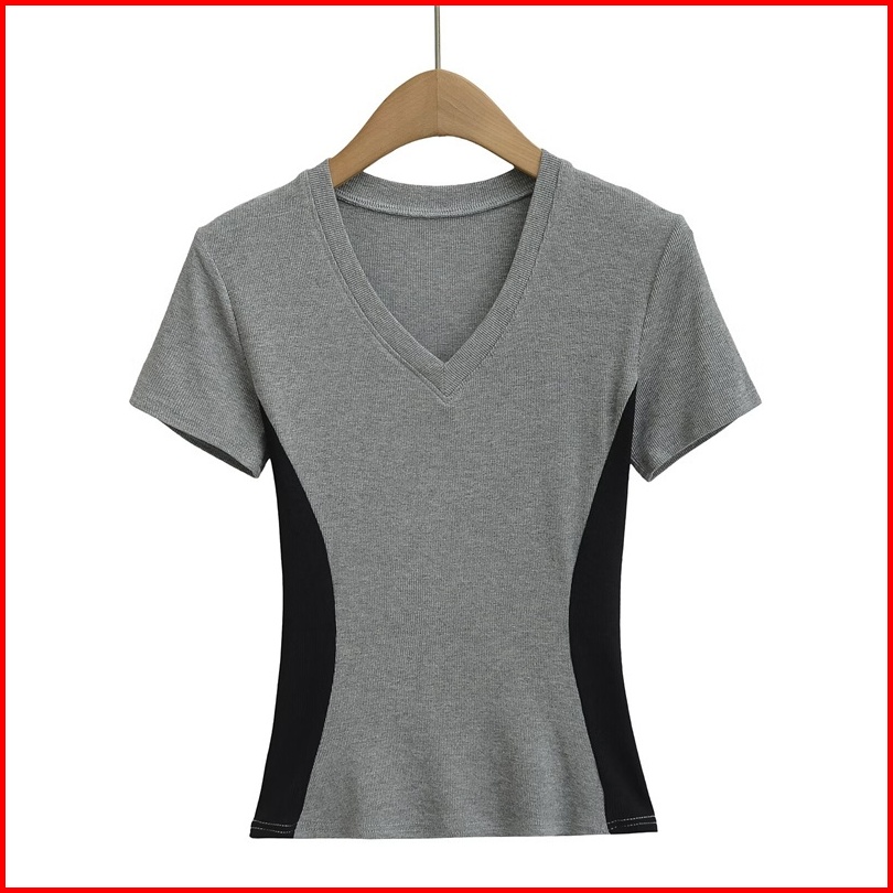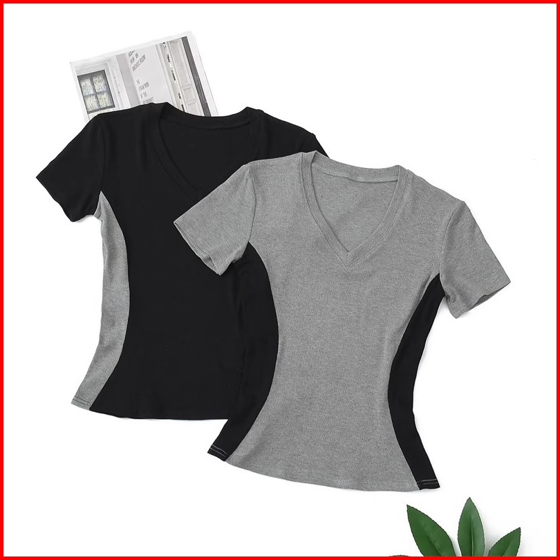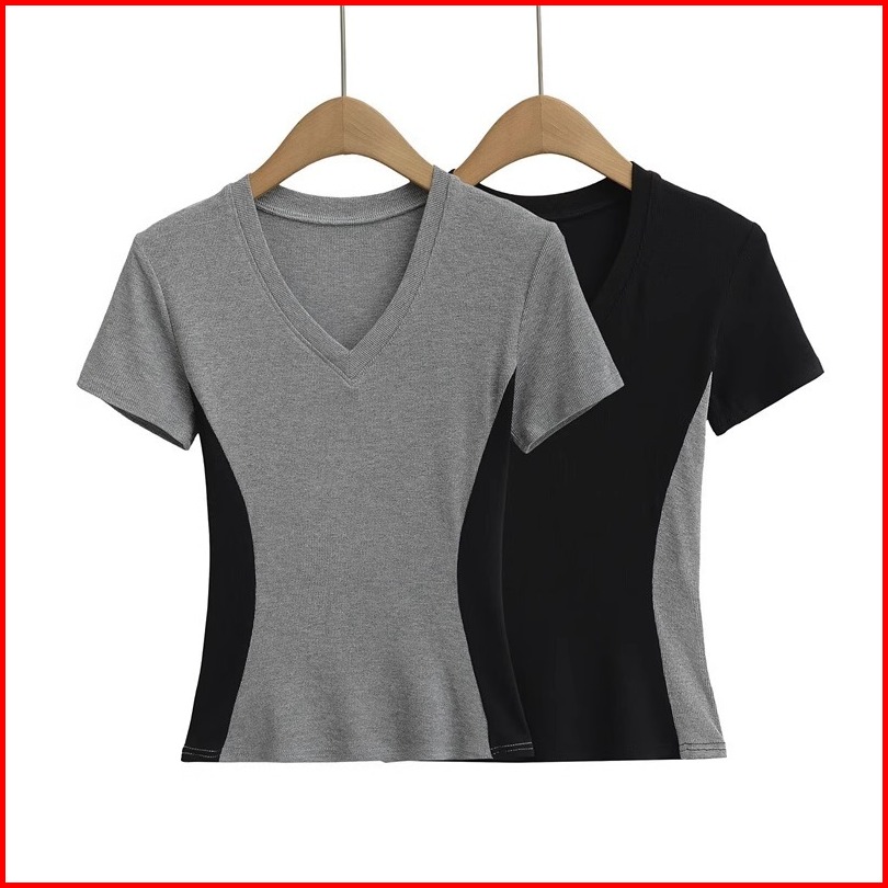 Premium Kaos Lengan Pendek Slim Fit Kerah V Wanita Seksi Atasan Lengan Pendek Wanita Modern