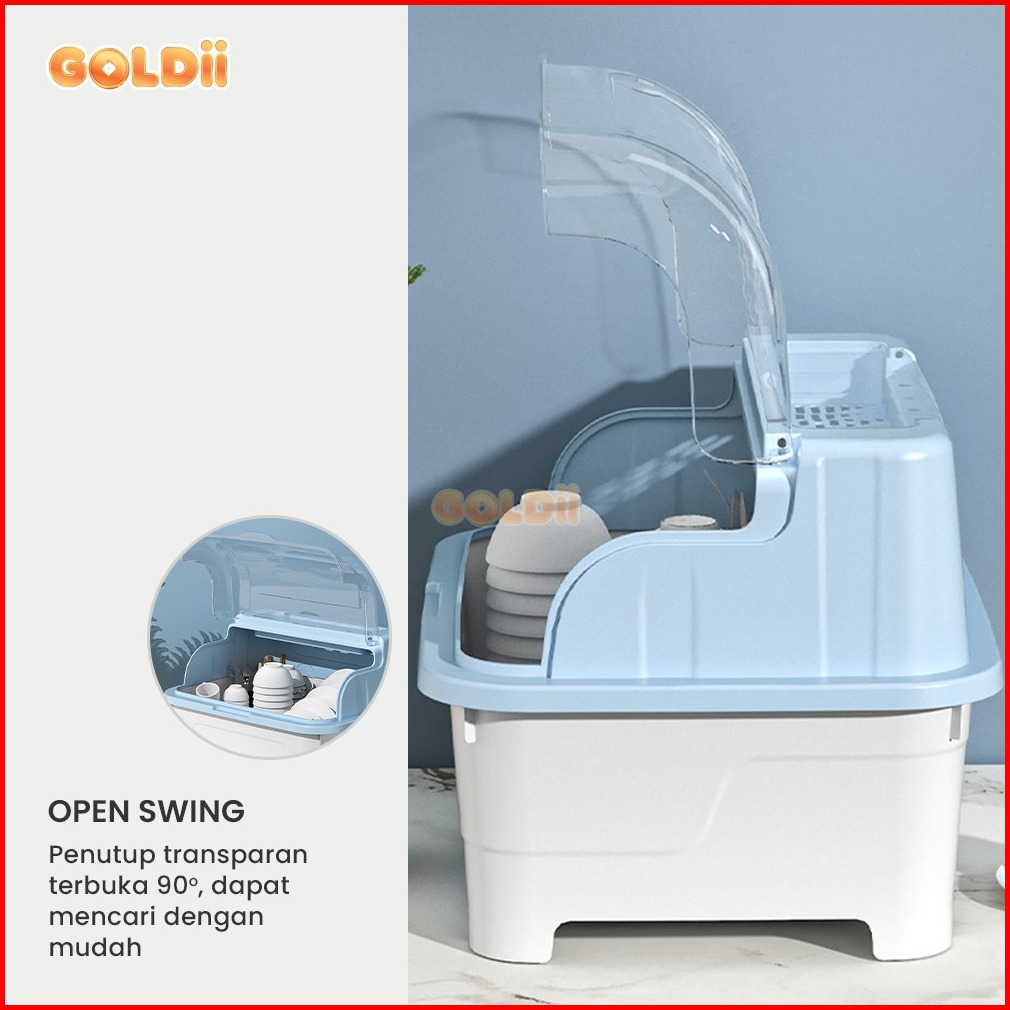 Goldii - Rak Pengering Piring Mangkok Rak Piring Plastik Dengan Tutup Rak Piring Mangkok Sendok Garpu Rak Dapur Multifun