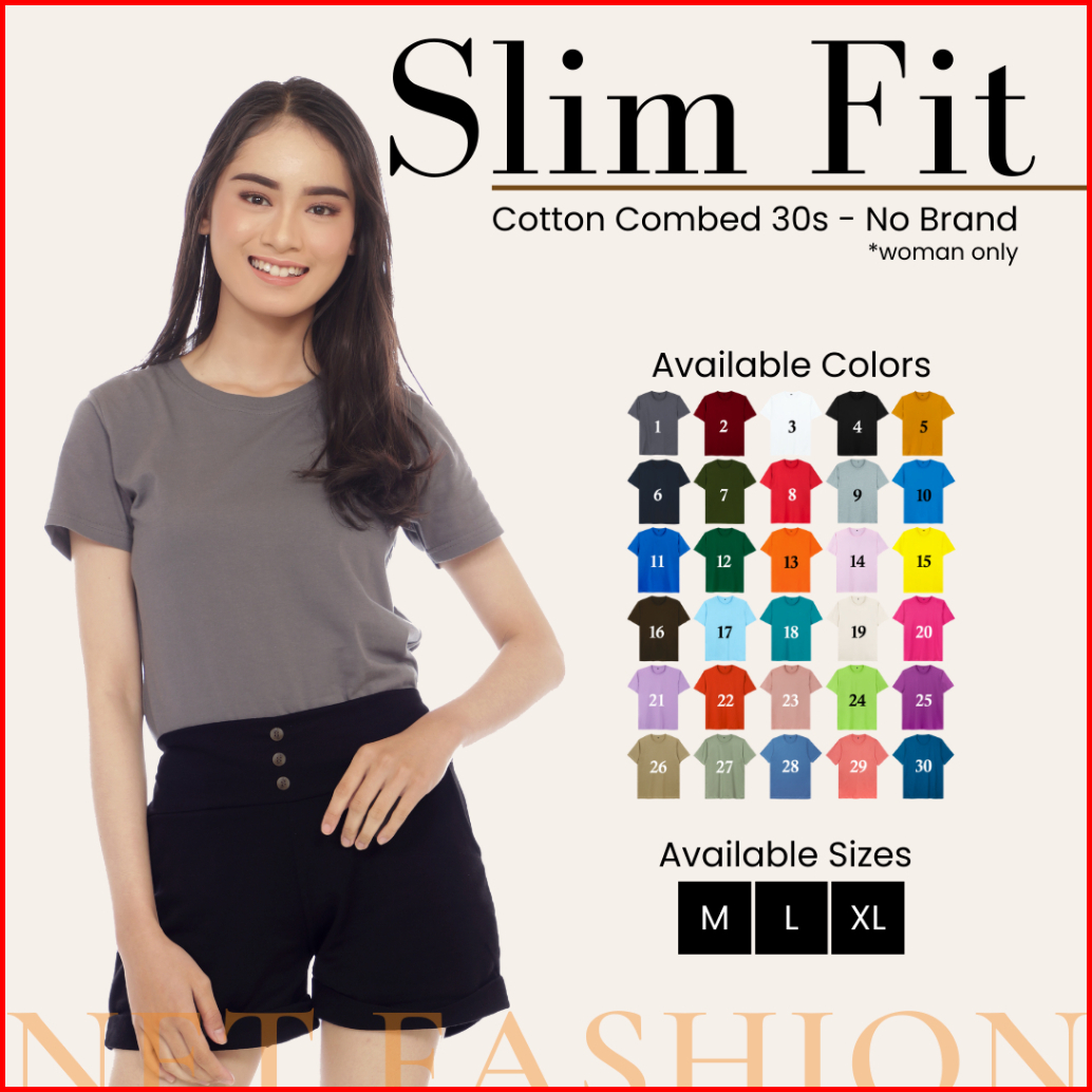 Kaos Polos Slimfit Wanita Cotton Combed 30s Lengan Pendek Cewek Slim Fit T-shirt Monochrome Series