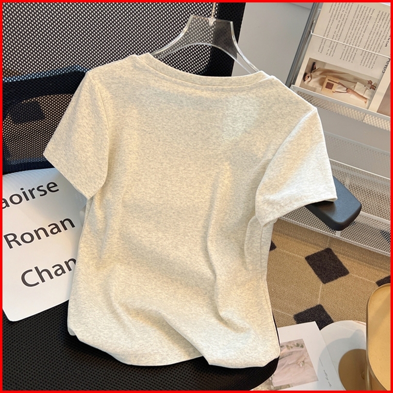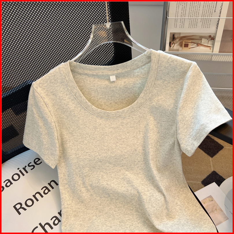 Kaos Leher Awak Slim Fit Berbahan Katun Murni Baju Kaos Korea Wanita Kaos Modis Dan Serbaguna Kaos Ceop Top Wanita
