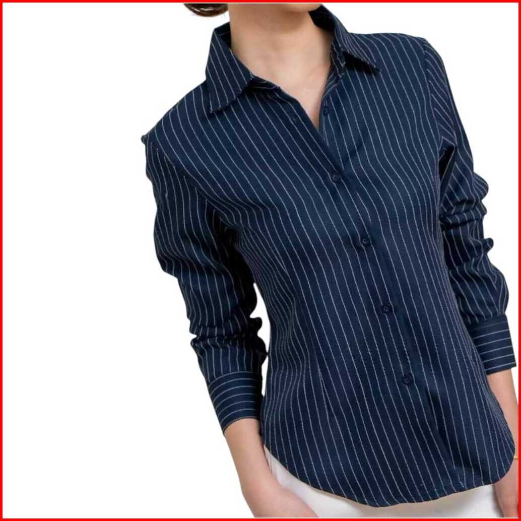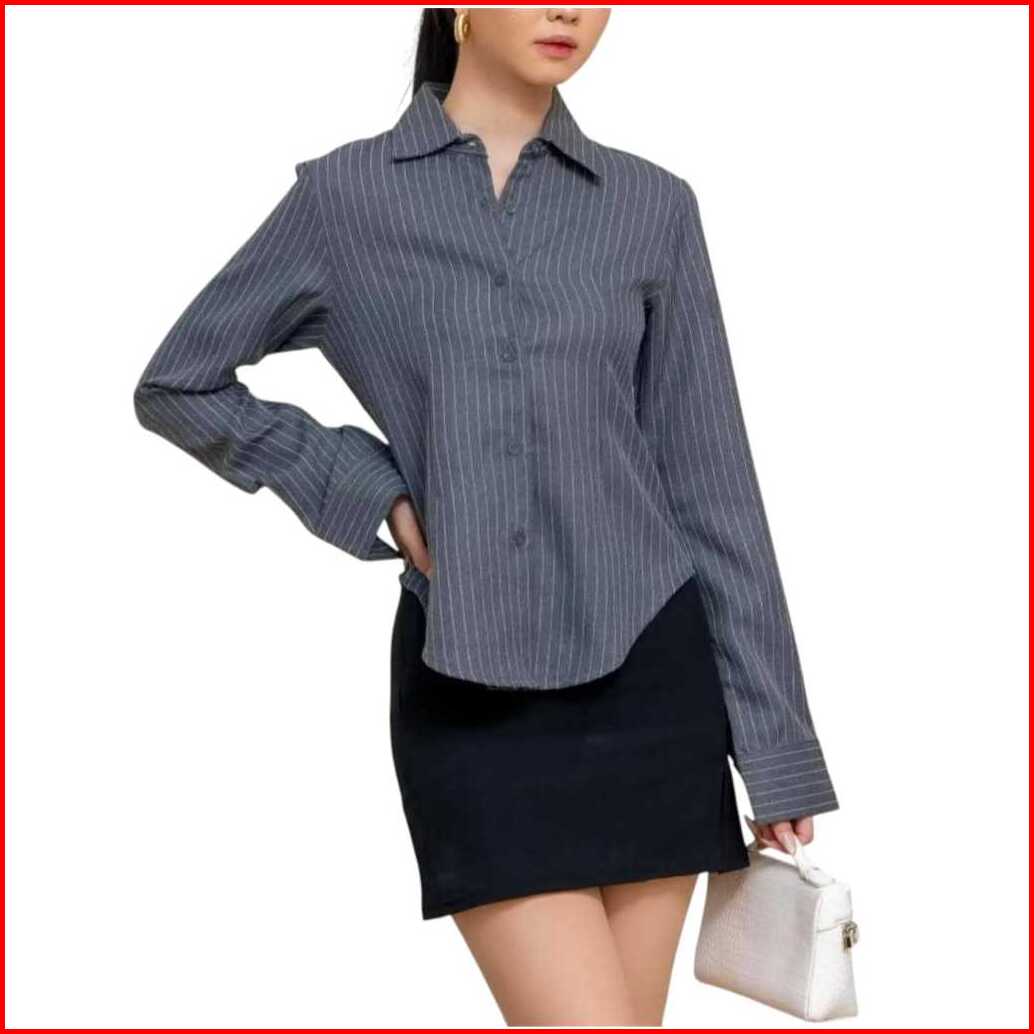 Luna Stripe Kemeja Fitted - Kemeja Wanita - Kemeja Lengan Panjang Salur Garis - Slim Fit Body