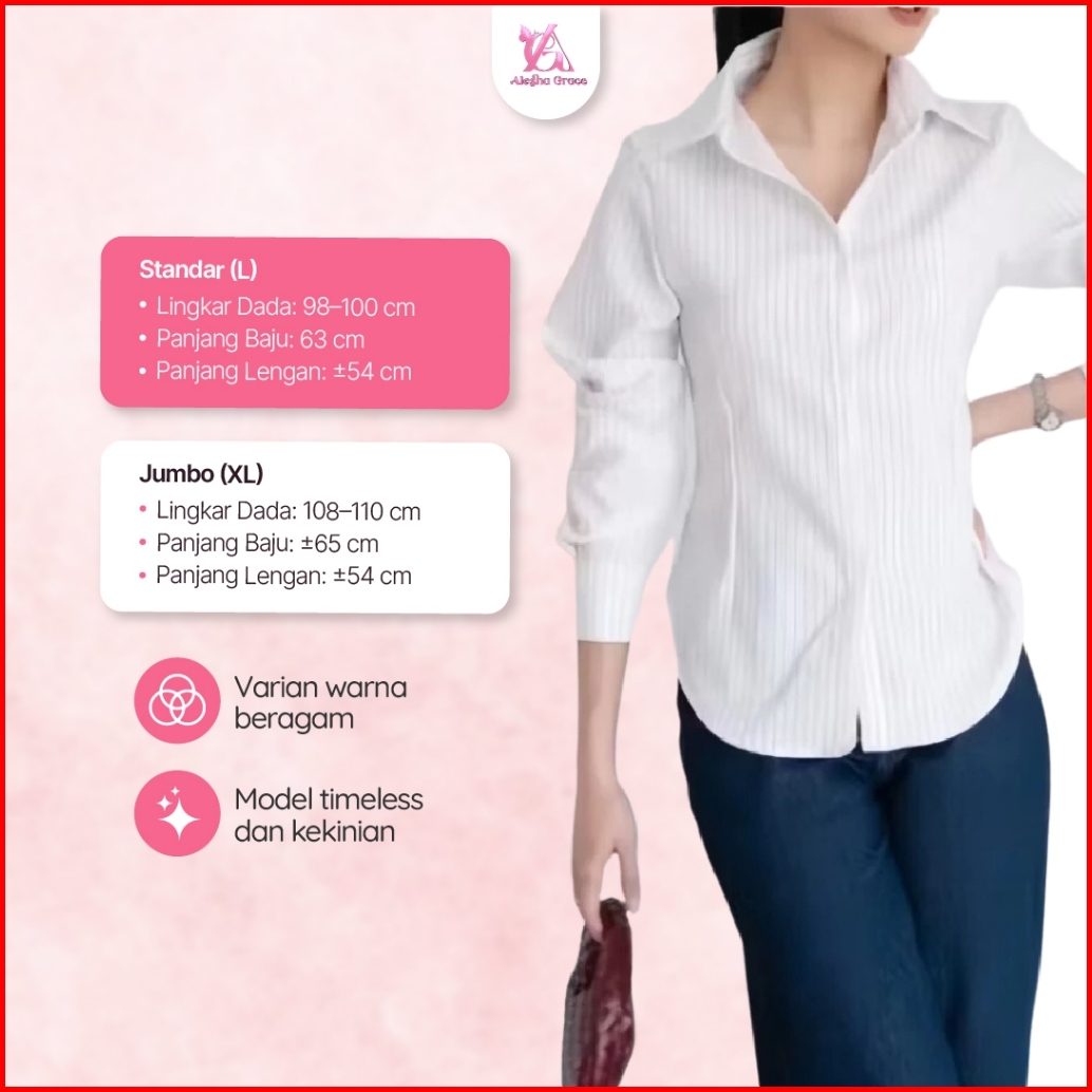 Kemeja Atasan Wanita Motif Salur Garis Stripe Slim Fit Body Lengan Flare Elegan Kekinian Feminim