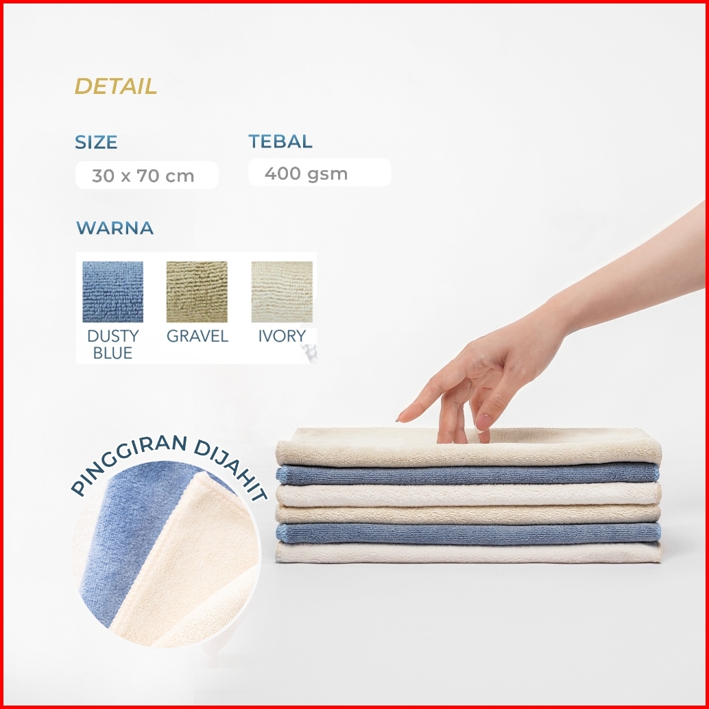 Handuk Microfiber Face Towel Anti Virus 30x70 400 Gsm Daya Serap Tinggi