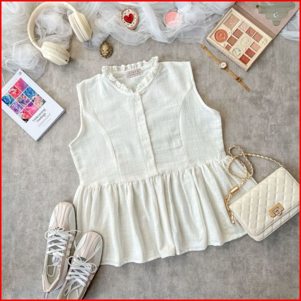 Inner Blouse Ruffle Blouse Ruffle Sleeveless Blouse Kancing Tanpa Lengan Busui Friendly Inner Ruffle Korean Style
