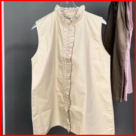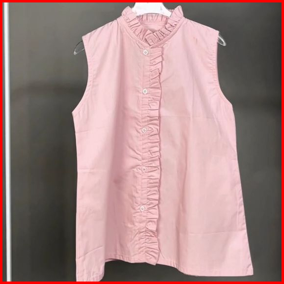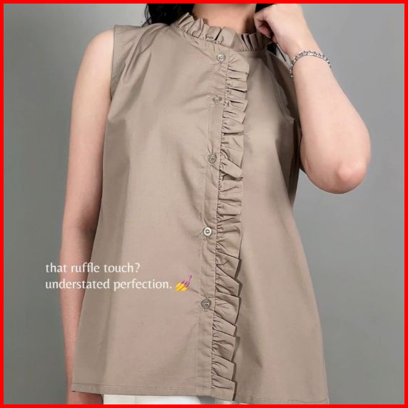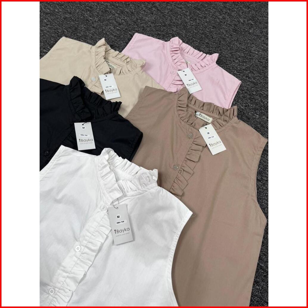 Bayka - Kira Inner Kemeja Highneck Atasan Tanpa Lengan Aksen Kerah Ruffle Leher Sleeveless Blouse
