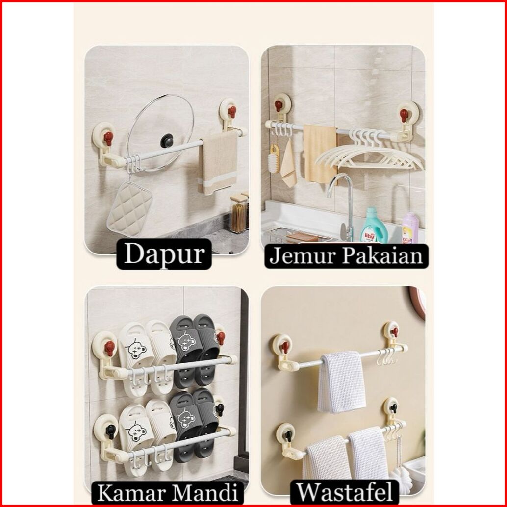 Rak Handuk Dinding Toilet Towel Hanger Rak Handuk Kamar Mandi Gantungan Handuk Tempel Hisap Dengan Kait