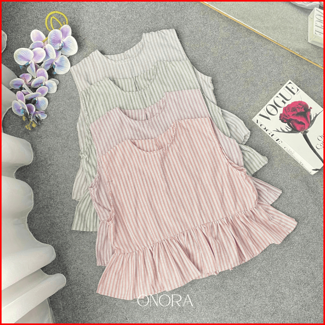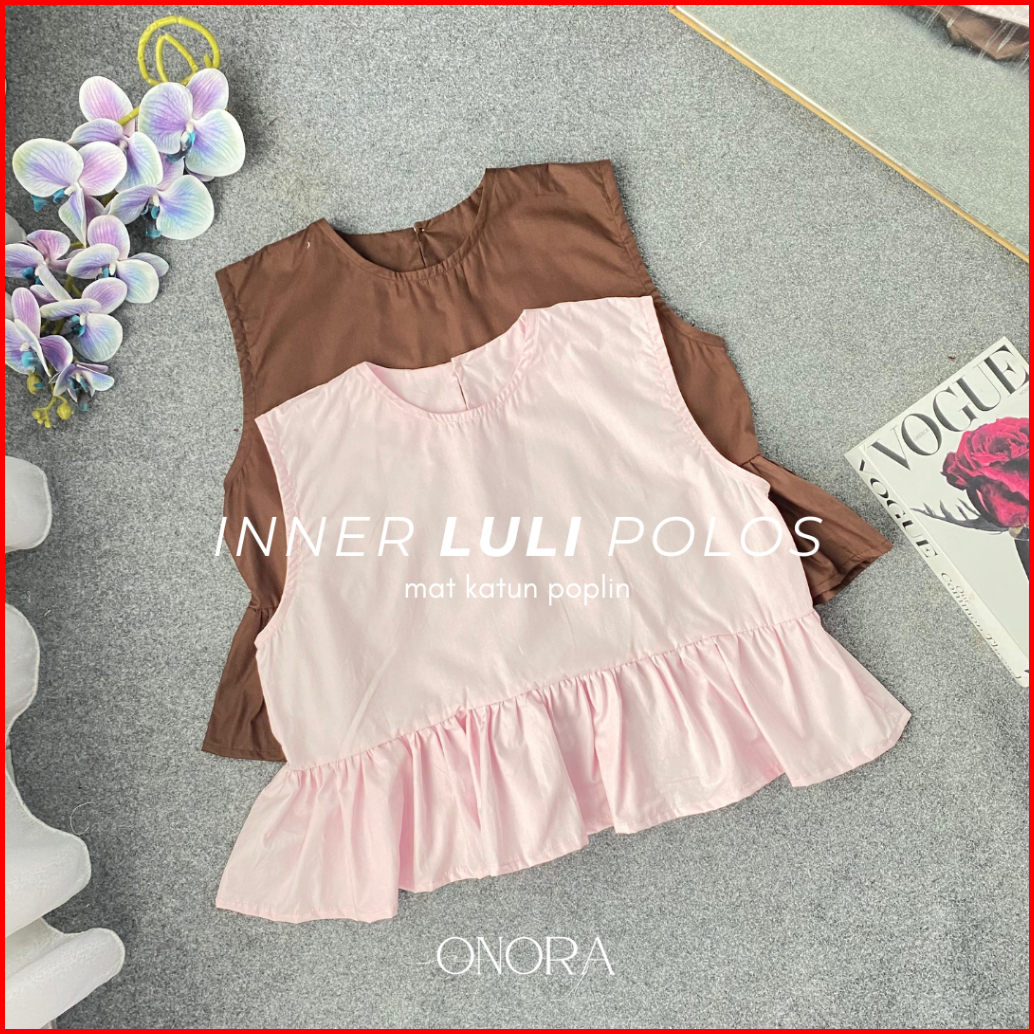 Onora - Inner Salur Polos Top Tanpa Lengan Ruffle Luli
