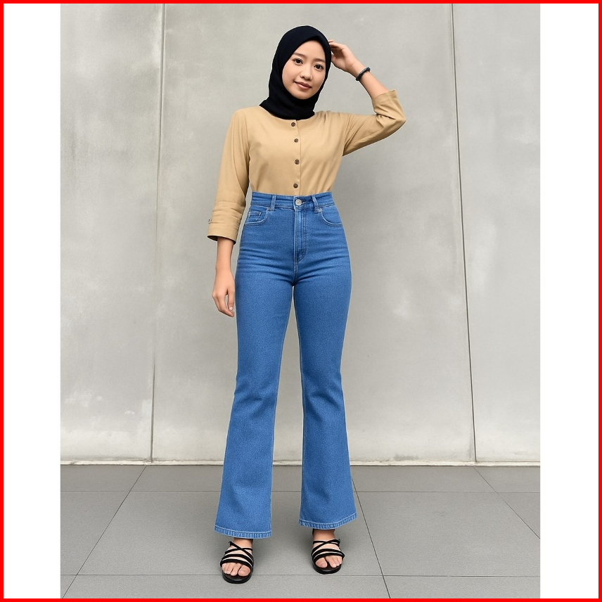 Onstyle - Haight Waist Cutbray Jeans Wanita - Celana Cutbray Strecht Kekinian - Cutbray - Bootcut