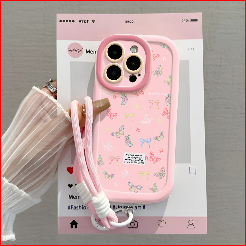Casing Hp Untuk Iphone 16 11 12 13 14 15 Pro Xs Xr 14 Plus Pro Max 7 8 6 7 8 6 Xs Max Casing Dengan Gambar Kupu-kupu Dan