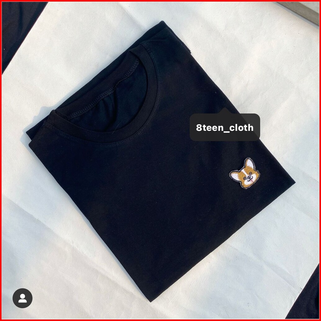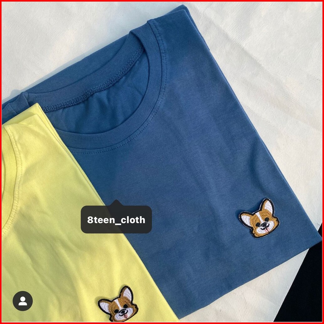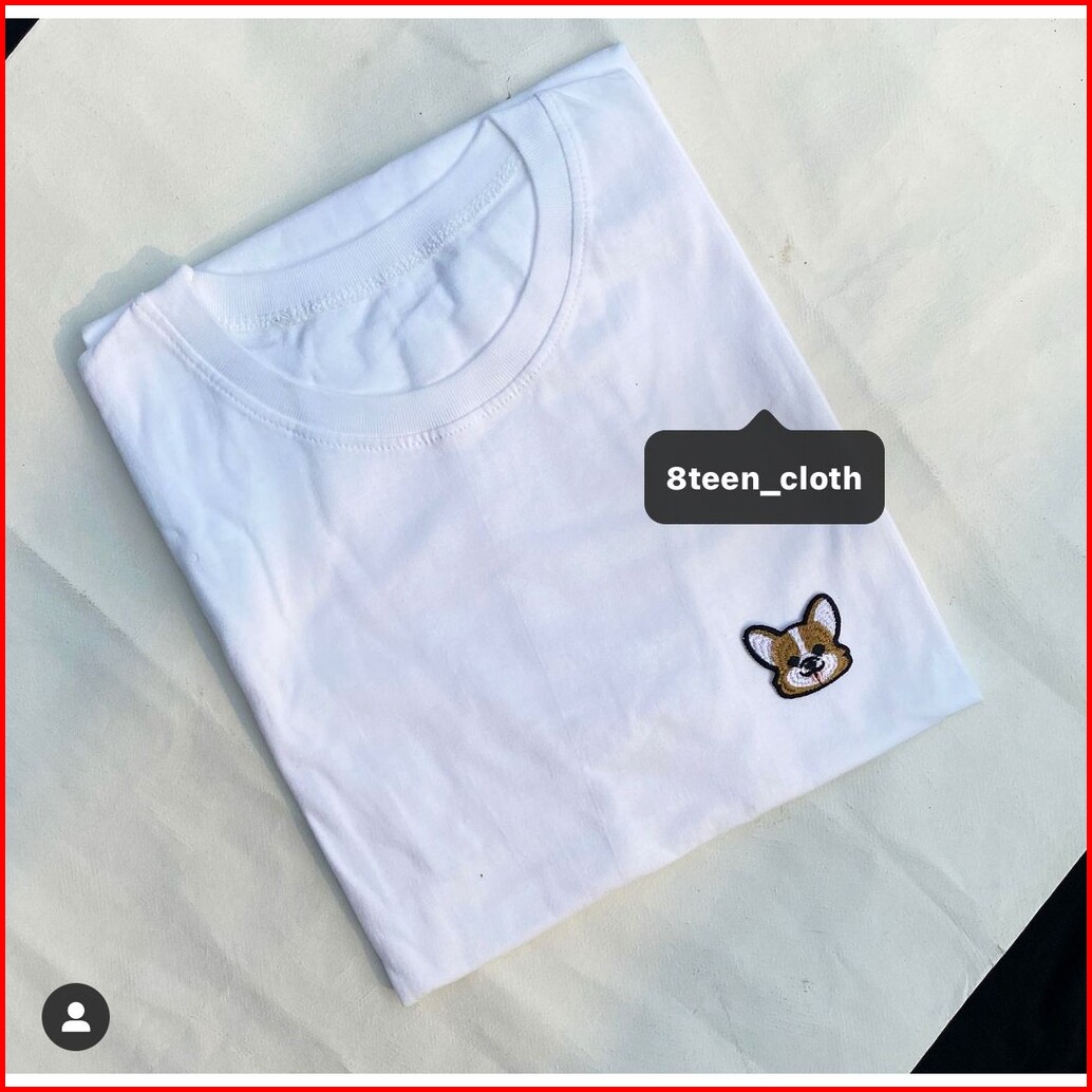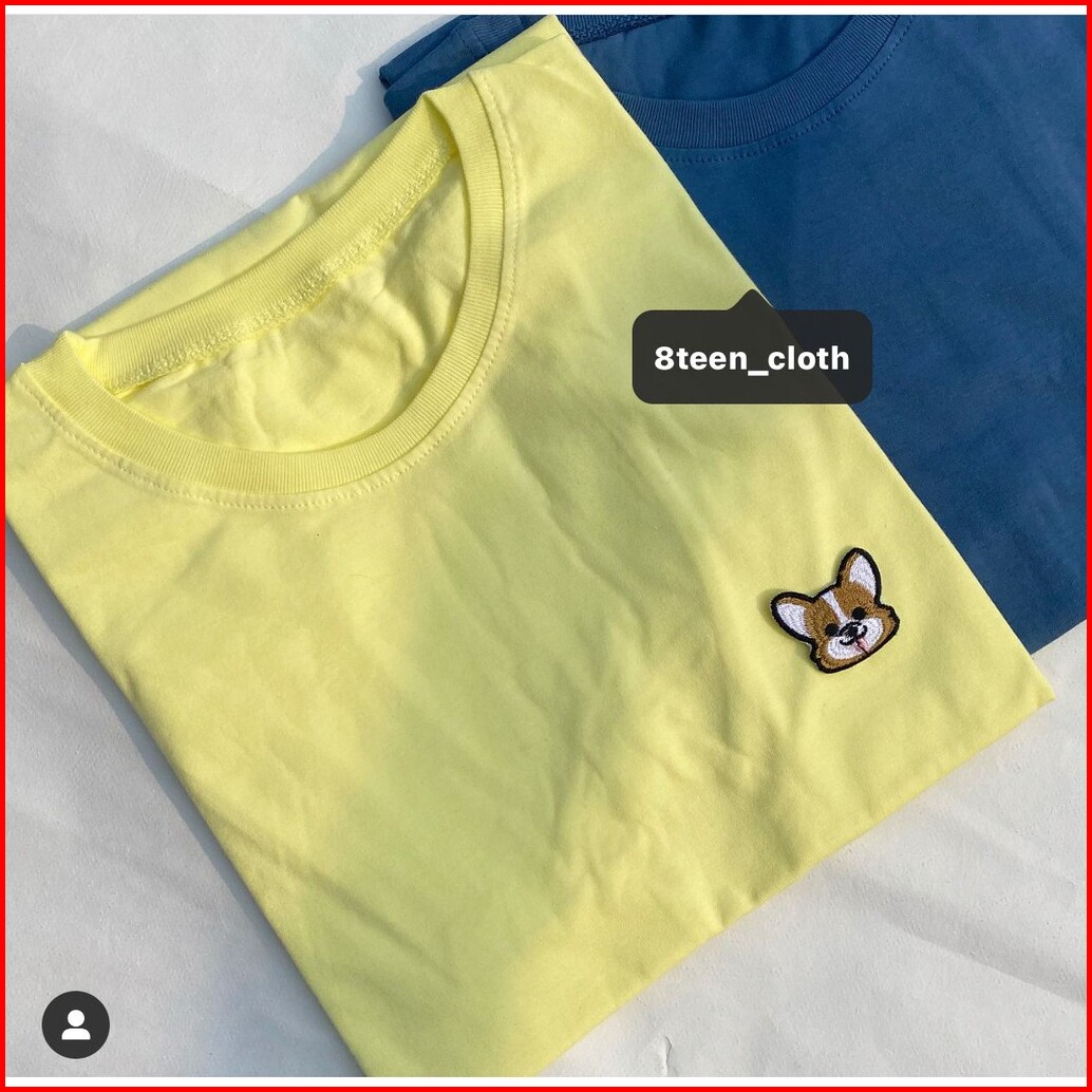 8teen Kaos Wanita Oversize- Corgi Bordir Patch Bahan Katun T-shirt Dog Steel Blue Light Yellow Hitam Putih Dusty Peach K