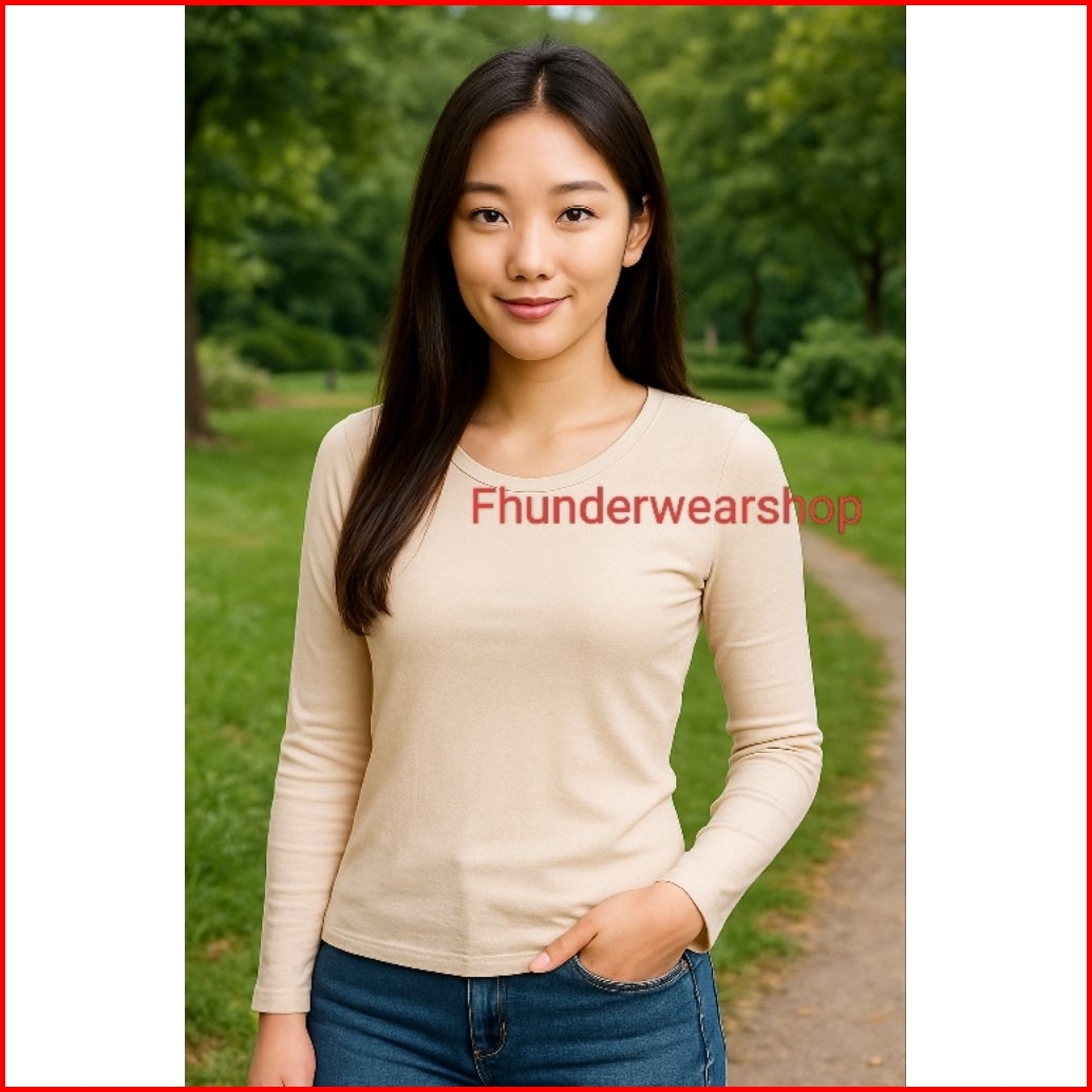 Manset Lengan Panjang Wanita Kerah Oblong Manset Dalaman Wanita Bahan Kaos Manset Kaos 303