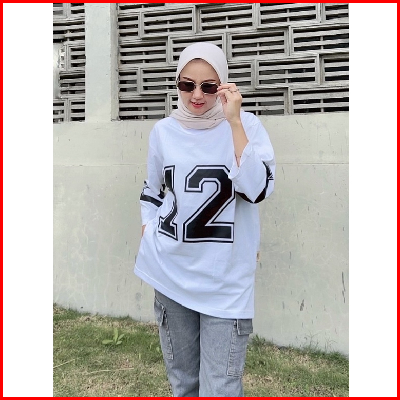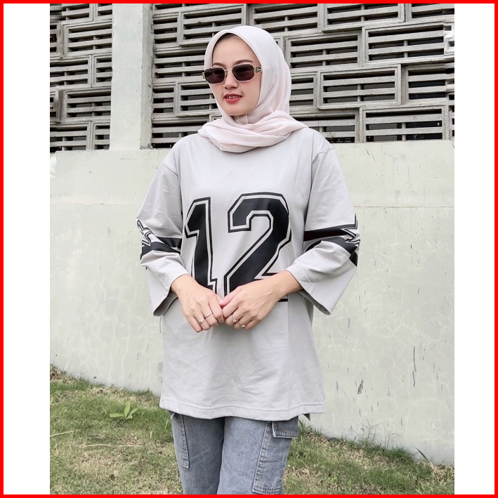 Atasan Oversize Baseball Lengan 7 8 Kaos Jumbo Sporty Kaos Vintage Wanita