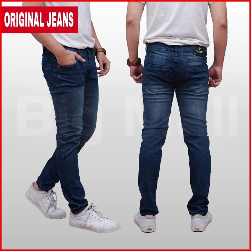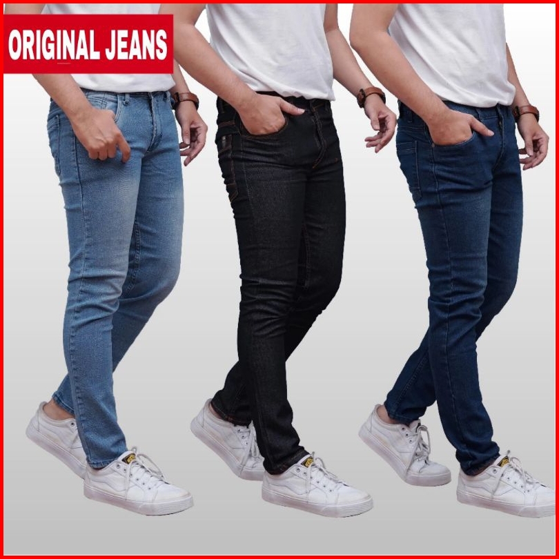 Celana Panjang Jeans Pria Original Bahan Tebal Stretch 4 Pilihan Warna Hitam Ice Blue Blitz Grey Wash Size 27 Sampai 38