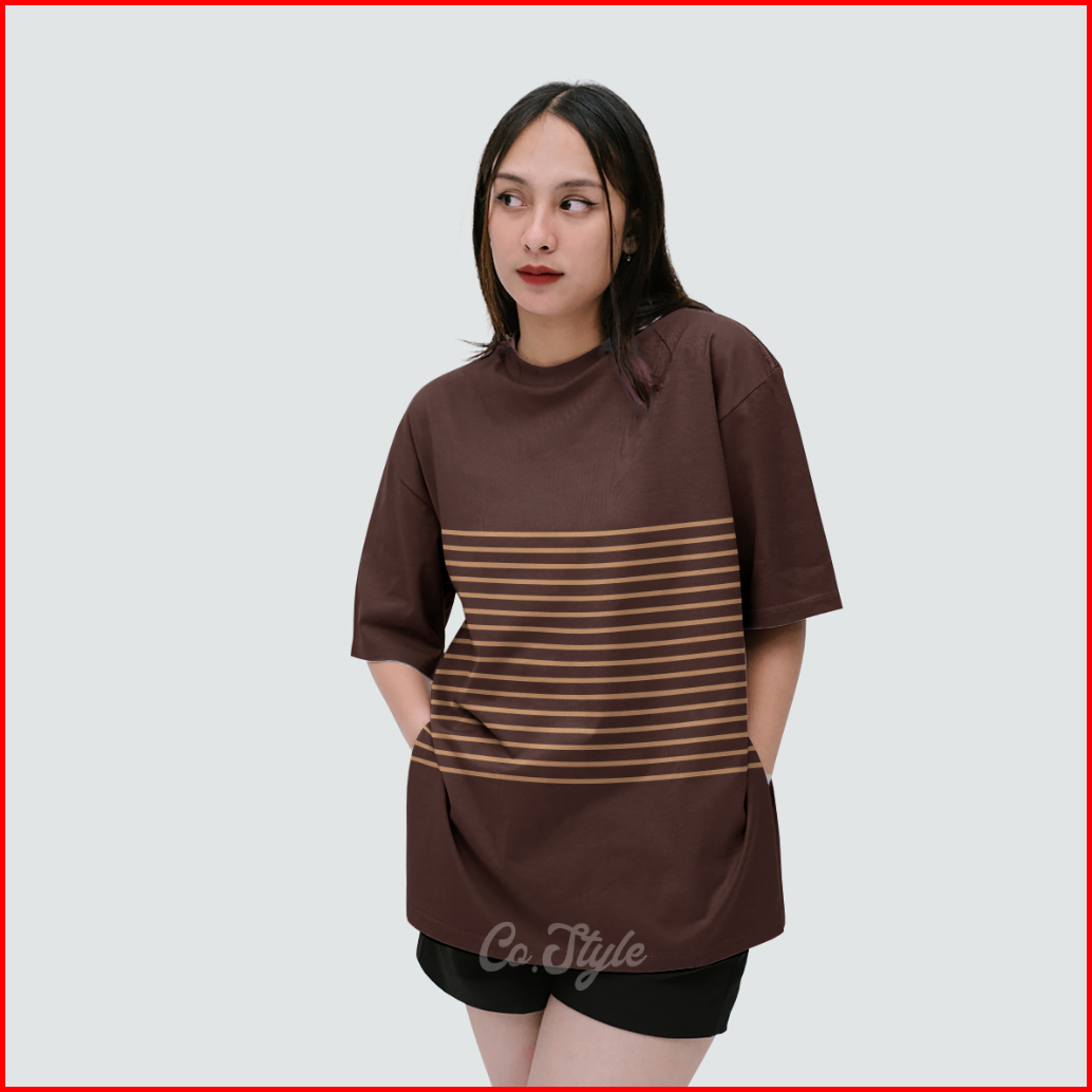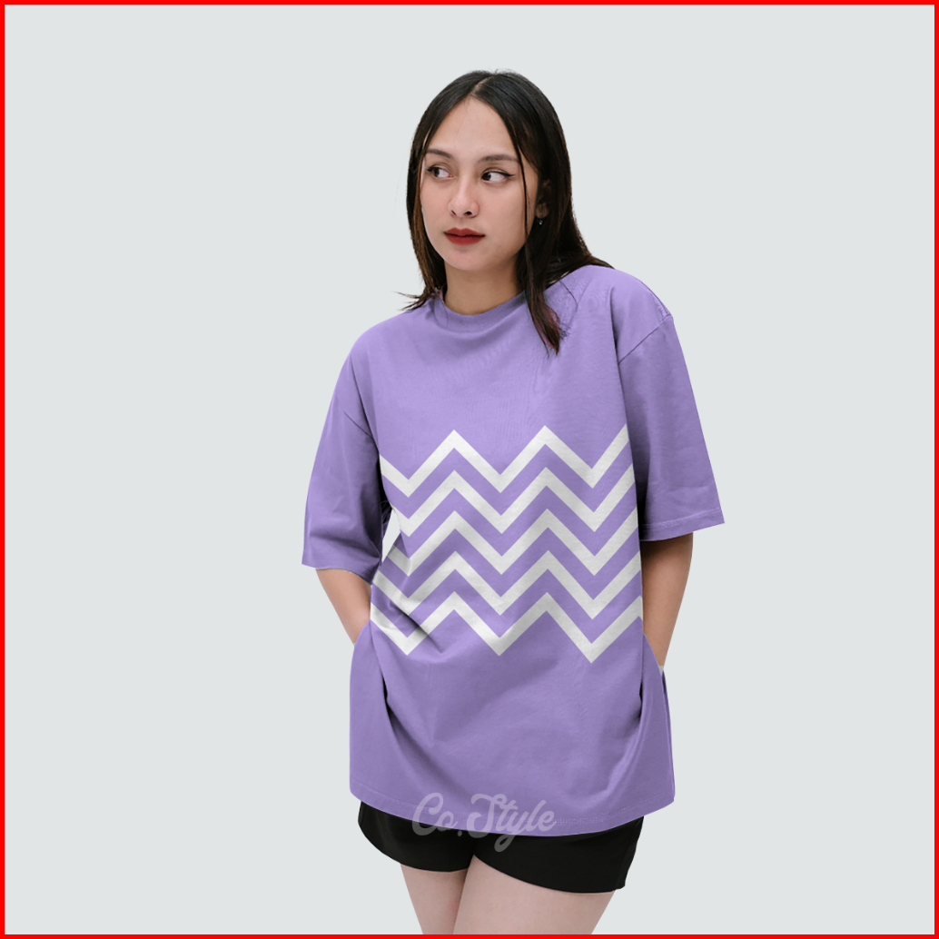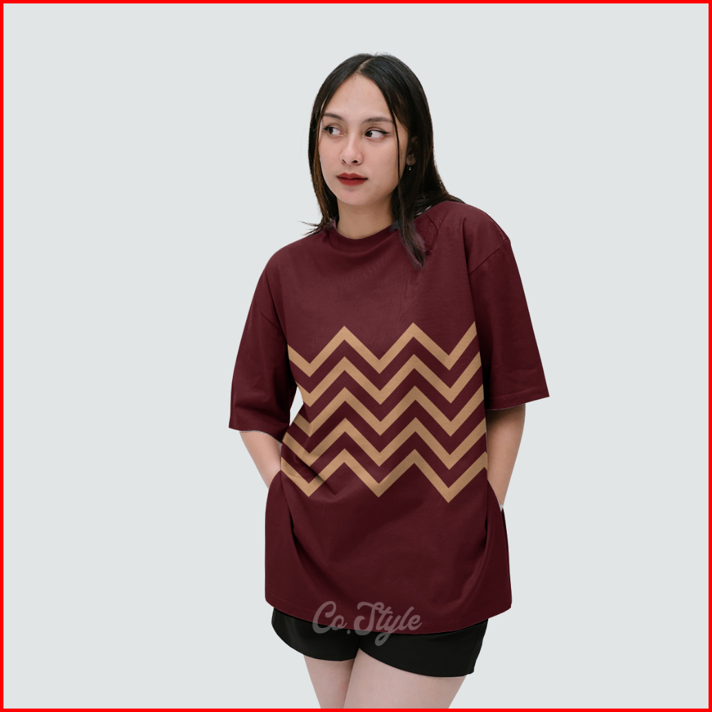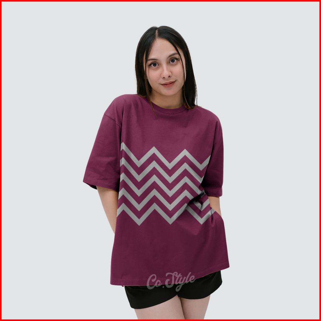 Co.style Oversize Highslit Zeea Leevy Baju Atasan Wanita Kaos Belah Samping Katun Garis Zigzag
