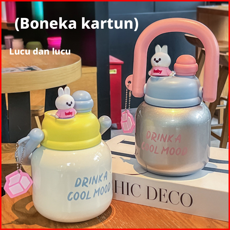 Stock Earise Vacuum Thermos 316 Stainless Steel 650ml Botol Tahan Panas Dan Dingin Tumbler Handle Desain Elegan