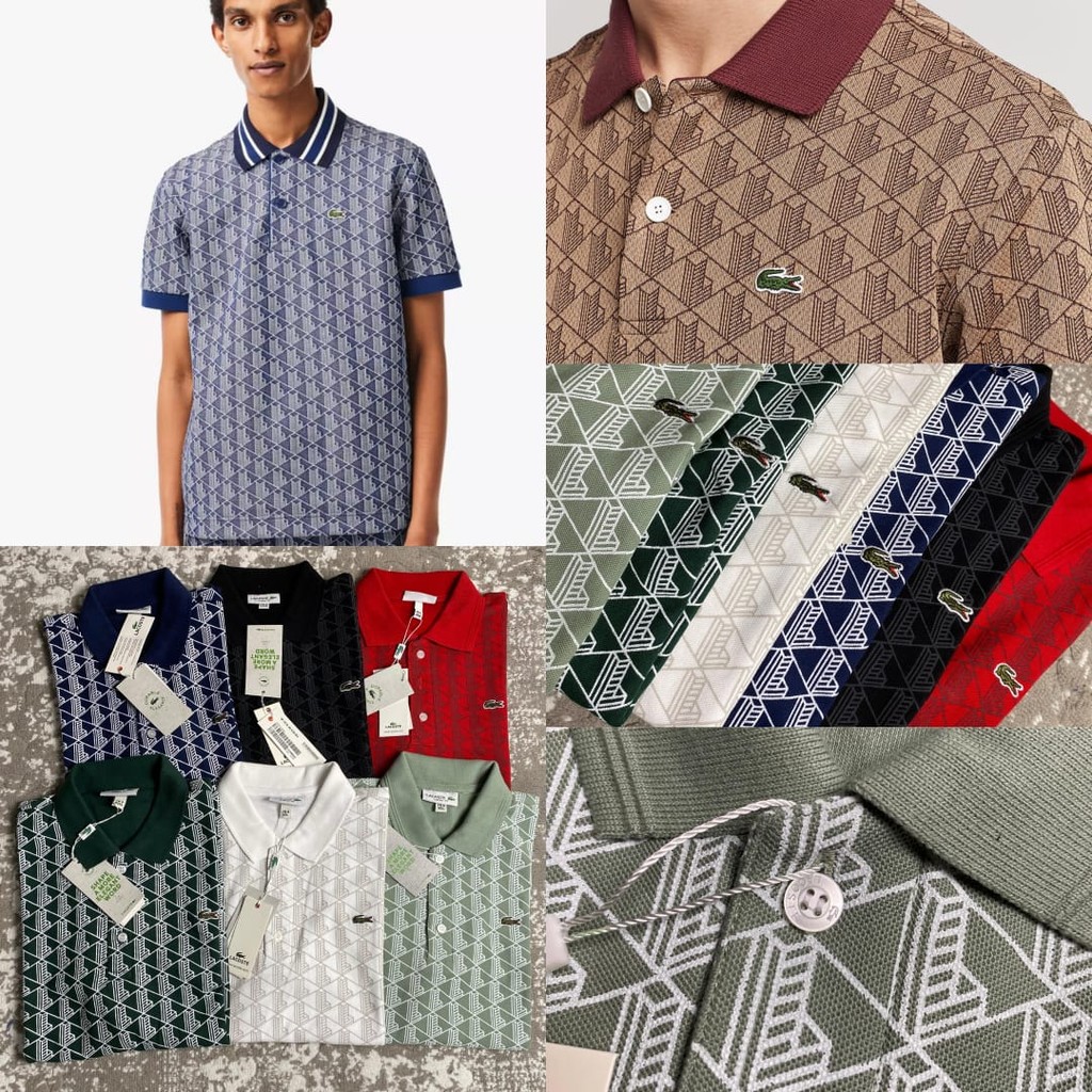 Lcst Polo Shirt Monogram Pria Wanita Atasan Kaos Kerah Regular Fit Bahan Katun Unisex